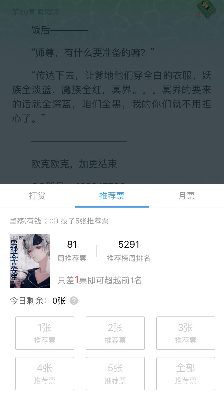 As of 11:59 pm on August 18 (Sunday), we have a considerable number of recommendation votes this week. Thank you everyone for your recommendation votes. Thank you for your support. Your support is the biggest motivation for me. Let's go for it in the new week~Chongya!!! Don't forget to play happily with ******~ (add more and more)