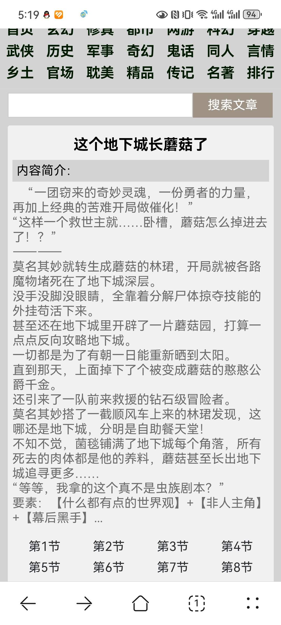 "A stolen magical soul, a warrior's power, coupled with the classic suffering start as a catalyst!" "Such a savior... Damn it, why did the mushroom fall in!?" ---- Lin Jun, who was inexplicably reincarnated into a mushroom, was blocked by various monsters in the depths of the dungeon at the beginning. He has no arms, legs, or eyes, and relies solely on the decomposition of corpses and looting skills to survive. He even opened a mushroom garden in the dungeon and planned to reverse attack the dungeon bit by bit. Everything is to one day be able to bask in the sun again. Until that day, a silly Duke's daughter who was turned into a mushroom fell from it. It also attracted a team of diamond-level adventurers who came to the rescue. Lin Jun, who somehow got a ride, discovered that this was not an underground city, but a buffet paradise! Unknowingly, the fungus blanket covered every corner of the dungeon, and all the dead bodies were his nourishment. Mushrooms even grew out of the dungeon to search for more... "Wait a minute, this really isn't the Zerg script I'm holding?" Elements: [World view with a little bit of everything] + [Inhuman protagonist] + [The mastermind behind the scenes]
