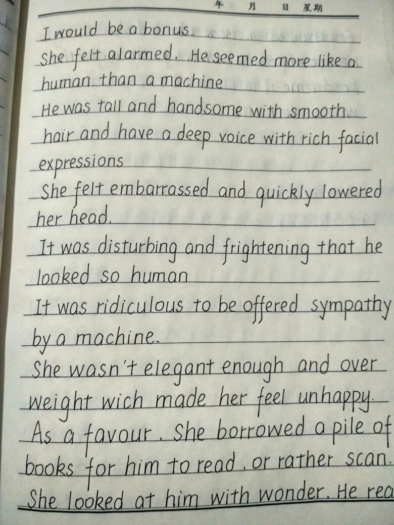 Judging from your writing skills, you should be between eleven and fifteen years old. There may be some errors. What should I say, the description could be a little more detailed. The pace of the plot is a bit fast, I suggest you slow it down a bit. The connections between the stories are quite well grasped. The content is full of a little girl's unrealistic but pure yearning for beautiful love. This made me read a lot of what you wrote. Keep up the good work😘