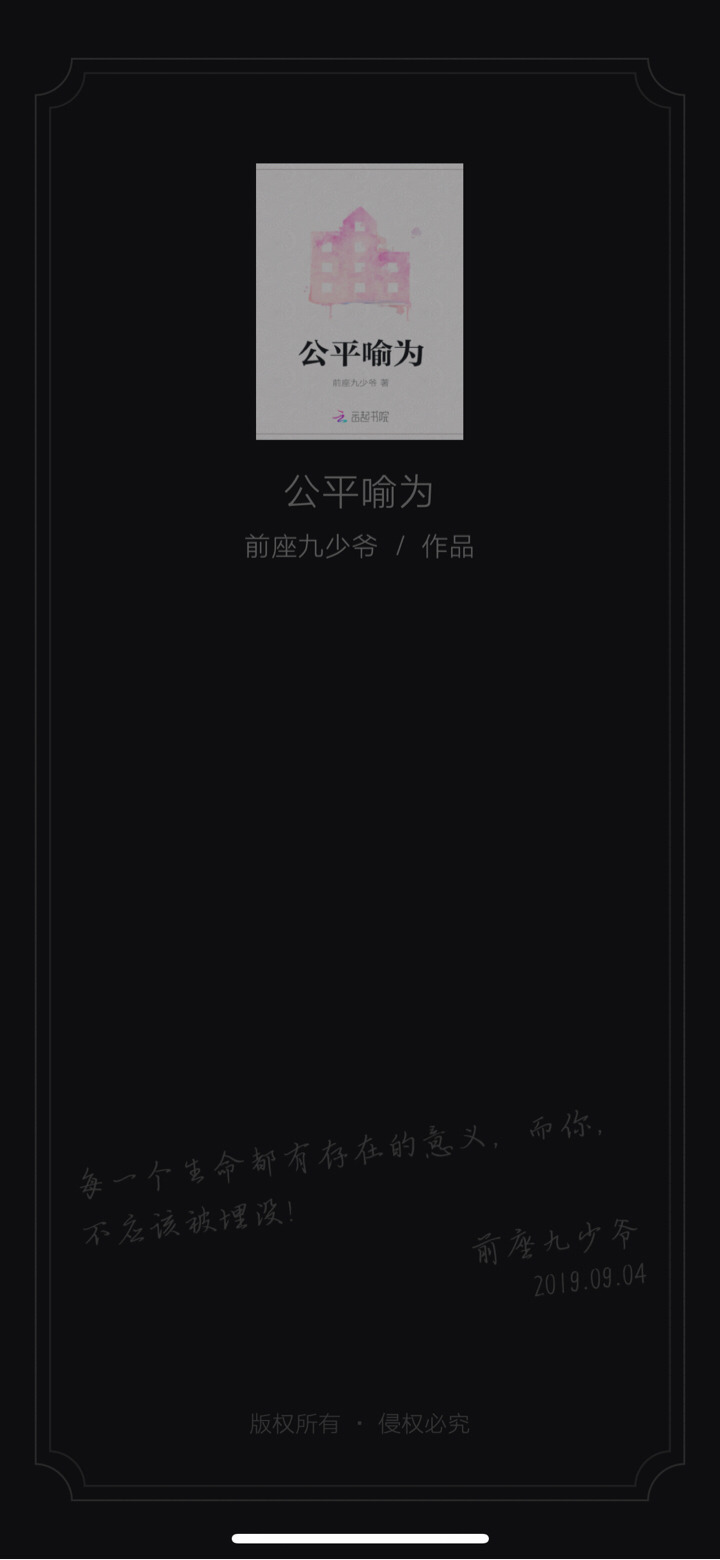 In fact, there are some things that have happened in the past few days that I dare not watch "Fairness as a Metaphor" again. Maybe this is the Fairness as a Metaphor! The writing is not particularly good, but it always reflects loneliness and disapproval. Many things are like this, just like "Fairness as a Metaphor". Although it is very good, I want to end it early! All the beautiful words in the world turned into perfect lies in the end. An ordinary word turned into a nightmare every step of the way. I didn't want to wait, but I also knew what was on the way forward. I wanted to move forward, but the illusion around me made me want to hold back! What exactly is it? Support the aftertaste, support me to go on? Maybe I still believe in fairness! Maybe this doesn't exist. Now when I think about reading a little bit every day, writing a little bit every day, and revising a little bit every day, I feel like it is a kind of torture! Why? Why are there such deceptions and graceful lies that make all fairy tales lose their color? Maybe I just don't love it! You don't have to love, but why choose to hurt? Fairness is a metaphor - dedicated to every one of you who is wandering on the edge of life!