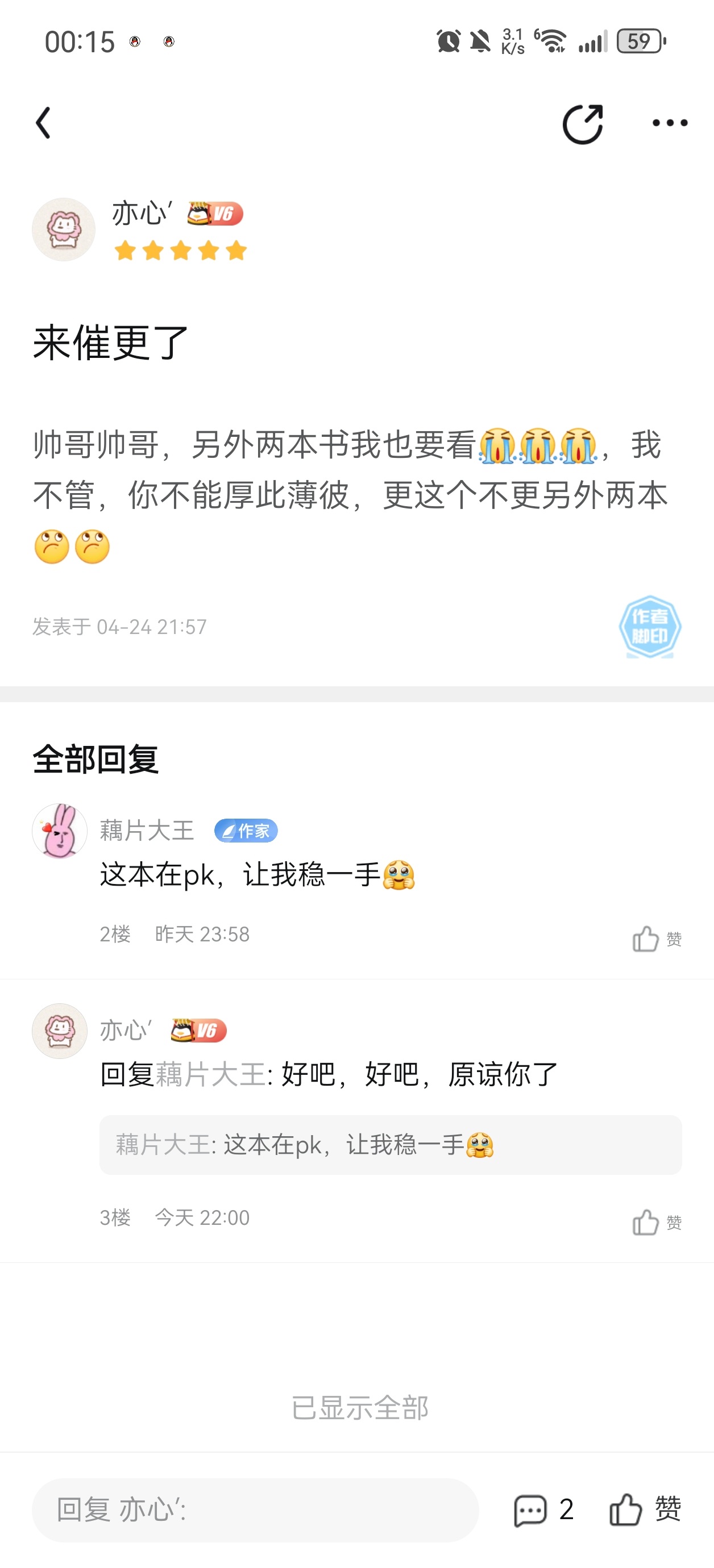 The handsome guy has recently published a new book. He is doing PK in that book. I might not pay attention to this book or the one about Fast Traveling Evil God. Children, you can go and read the book about Yanzhi Anchor. That one is also good-looking. Although I don't know if the PK book will be finished and whether the handsome guy can update three books every day😍, I'll just look forward to it. Handsome guy, set a small goal for yourself, update three chapters of him every day✌️✌️