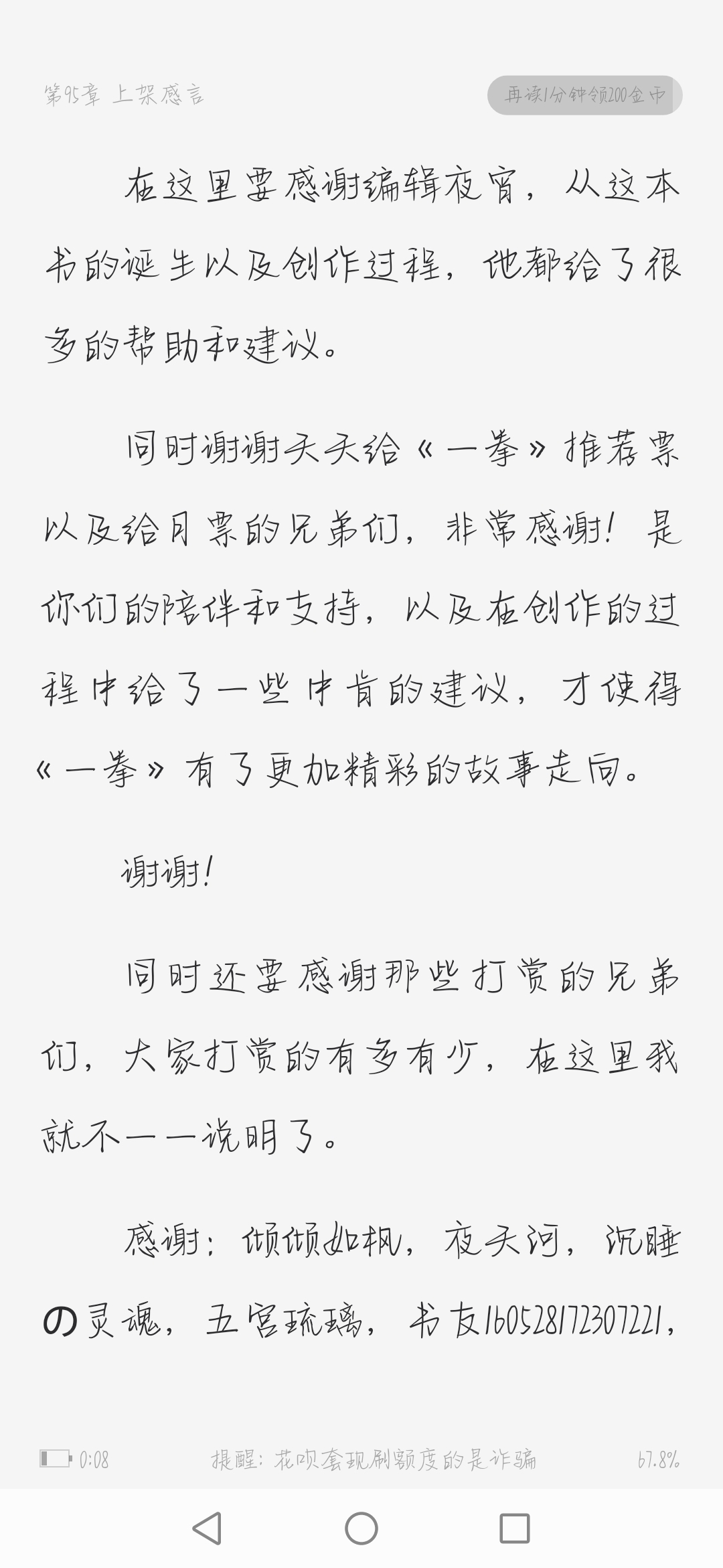 Evaluate this book from your own perspective. If there is anything wrong or bad, please don't criticize it. You can tell me secretly. Ahem, first of all, the author's writing style is good, and the sentences are very effective but a bit messy. To be honest, when I read the book at the beginning and finished it, there was nothing that really attracted me. But there is no doubt that the author is indeed pretty good, a veteran. Secondly, how should I put it? The reason why many people think this book is good is because some parts are well written. As an old bookworm, I have seen too many such writing methods and plots. Maybe newbies think it is very interesting. Yes, it is indeed great! The author is also careful, but the author did not finish the outline when he should have written it or started writing it without writing the outline. After all, the first dozen chapters were very confusing, and what the protagonist said made me confused. Third, I suggest that you just read the book before it is put on the shelves. The author after it is put on the shelves has written the book so well that you can eat it with confidence. There may be a lot of wrong sentences in the front, but the typos in the back are gone, and the reading feels a bit slippery, which is very satisfying😯. Fourth, this is indeed a good book, but it's not suitable for me. Bookworms can read it! Confirmation completed, the author is an experienced writer, the article has good content, the car is like a kindergarten, and the person is Teacher Cang! Come on, author!
