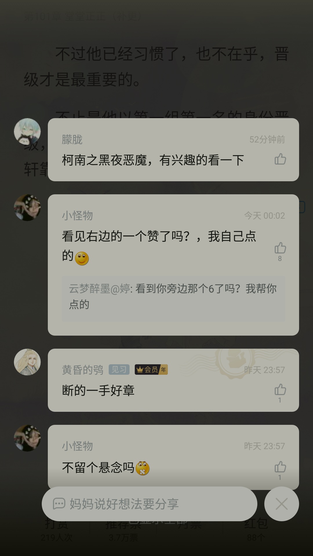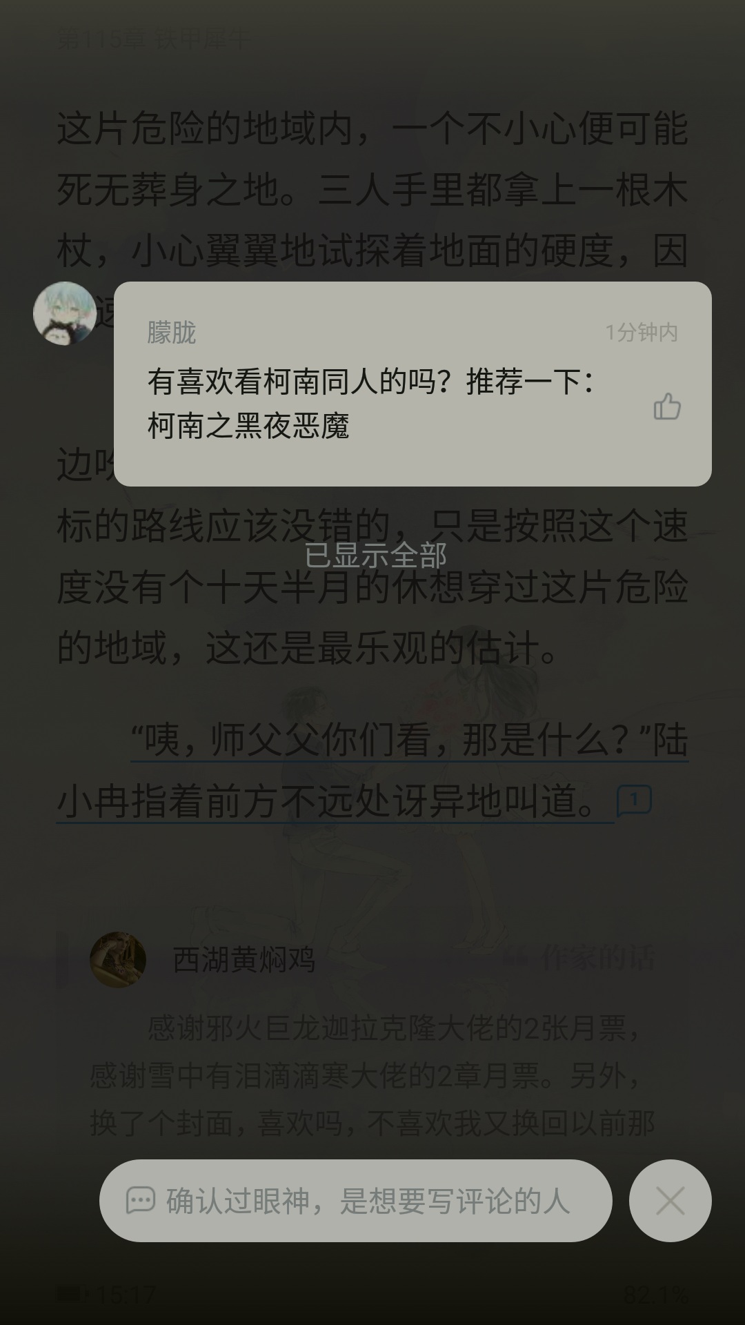 I am the novelist. For those who have not responded to QQ reading comments. I apologize. Because my software does not allow people to reply to QQ reading. It is said that it has not reached the level of public reply. So I forgot about it. Because I rarely read QQ. But if you have any opinions, please feel free to put them forward. I might as well improve it. Thank you all.