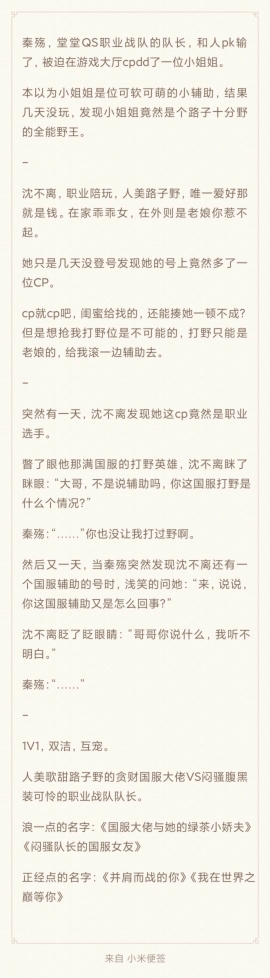 I always see a few questions that make me speechless and helpless. Here, I make one final statement. 1. Why didn't Lu Qi hear Nan Shi's voice in the game at first? Could it be that the voice in the game was different in reality? My answer is: Sound is a sound wave generated by the vibration of an object. It is a wave phenomenon that propagates through a medium and can be perceived by the hearing organs of humans or animals. Sound propagates at different speeds in different media, so what we feel is different. For example, with a microphone, sometimes the sound heard from the microphone is slightly different from the original sound. Not to mention headphones, you should also have experience in this area. Second, why is the WeChat name one "Abandon" and the other "What's in the Heart"? My answer: [Abandon] is from Lu Qi's perspective, [What's in the Heart] is from Nan Shi's perspective, and [What's in the Heart] is Nan Shi's note to Lu Qi. I have already explained this issue twice. Please clarify it yourself. I can't always add Lu Qi's perspective or Nan Shi's perspective next to it every time I write, right? Okay, that's it, no more explanation on these two issues. As for other questions, I didn't see them and won't reply.