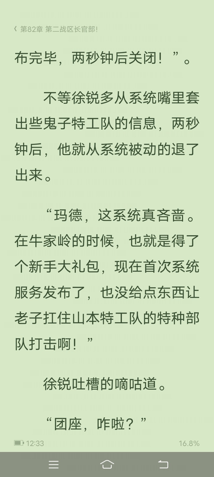 I read about forty chapters and came to the following conclusions: First, the characterization is very good and it is very comfortable to read! Second, the details are not good. 1. The Japanese army's combat power is too low, and the battle damage ratio is one to one hundred, which is too different from the facts. 2. A regiment of the Shanxi-Sui Army was ambushed during the change of defense. It had a radio station but neither took the initiative to contact the superior commander nor received a telegram from the superior. This is very unreasonable!