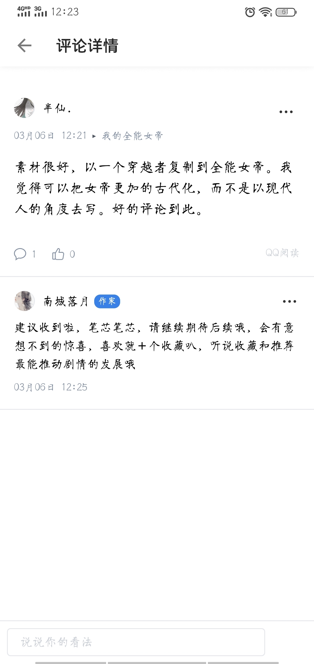 First of all, I am very grateful to all my friends who have read the book Empress. No matter how you know this book, it has brought great popularity to your collection and recommendation. I would like to express my sincere gratitude. Bow ninety degrees. In order to better help you get to know each other better, we are launching an interactive post here. Da Da Da Da Da Da receives recommendations every day. I am very grateful to everyone for voting for recommendations. I would like to suggest that all friends who have read Da Da Da Da books, whether you have voted for recommendations or collected them, please go to the comment area to read this post. ①If you have any comments, you can comment below this post and you will receive a timely reply. ②Thank you to the cuties who contribute recommendations every day. After submitting your recommendations, you can leave a message below the post to see timely interactions. ③If you pass by and look at the edges of your eyes, please don't spray thank you. It's not easy to write. If you don't like it, don't come in. If you don't like it, don't spray it. ④ Anyone who participates in the interactive post and leaves a message will have an opportunity to ask questions about the plot. I hope everyone will actively participate. Thank you. I will wait for you in the comment area.