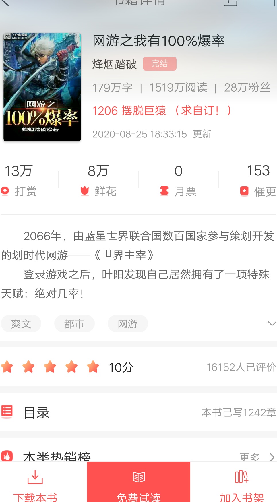 I vomited. In a game where human intervention is impossible, how did the protagonist know the exchange rate between game currency and real currency at the very beginning of the game? If it is because of rebirth, how can the exchange rate between game currency and real currency remain unchanged for ten years? In addition, the system gives everyone 10 gold coins at the start, and a mission may have 100, 200 gold coins. However, at the beginning, how can one person get tens of thousands of gold coins? As long as you describe Bai Yuyue and the guild to collect money, I can accept it. Later, the skill book is even more excessive (can't you change the game currency transaction into a real currency transaction?). Also, in the early stage, a day shift equipment cost hundreds of yuan, and a piece of equipment costs one or two thousand? Does the author know that most of the game is made up of students? Whose students buy the crappiest equipment in the game for a thousand or two thousand? Shouldn't later equipment be more expensive? A piece of equipment costs hundreds of thousands? Not to mention the students, some adults can't even afford it. Moreover, according to what you wrote, the real capital industry chain will collapse directly. Can you also consider the logic a little bit?