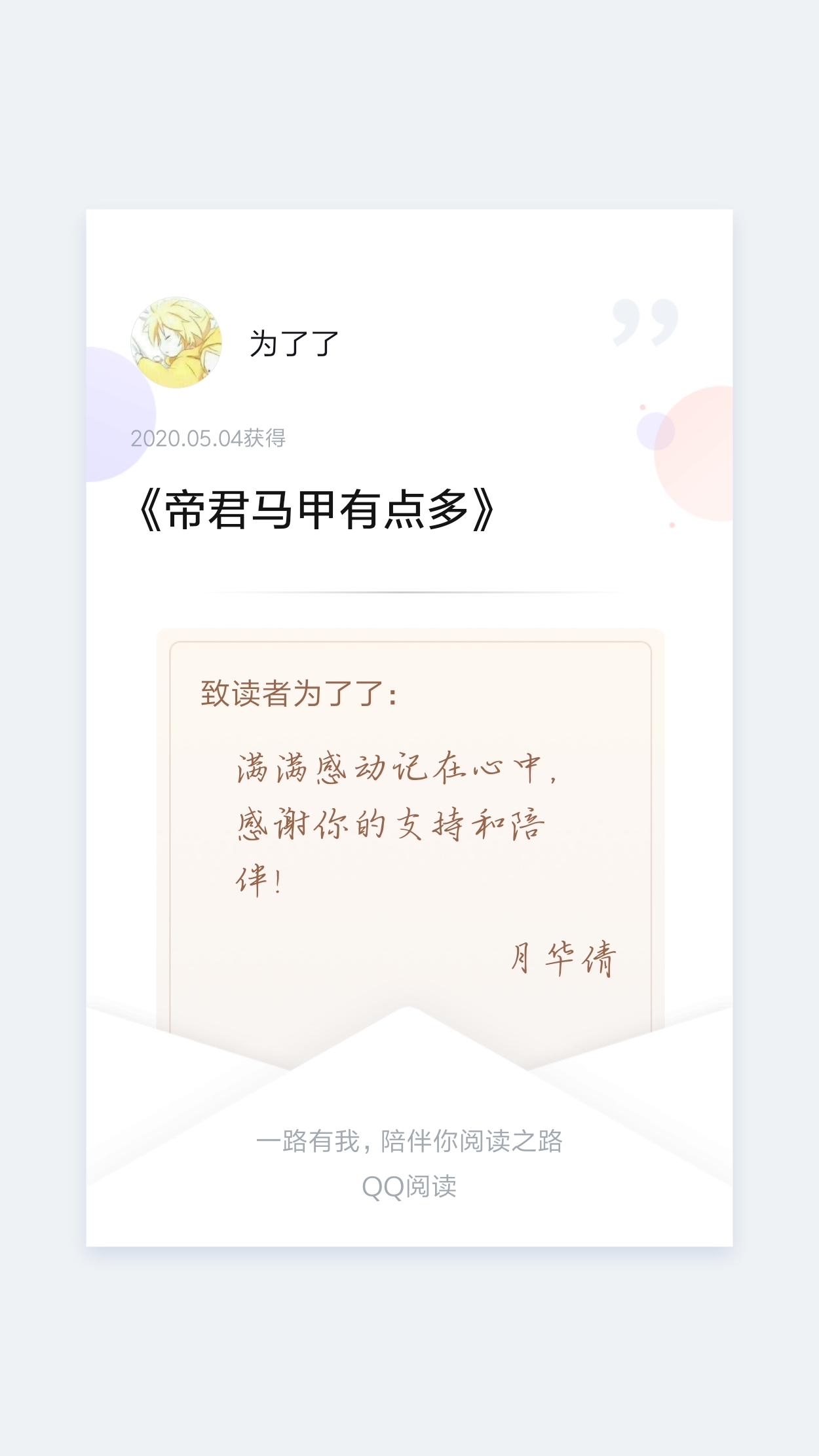 "I hope all the burdens will turn into gifts in the end, and the pain and hardships endured can illuminate the confused road in the future. Big cheers for the author