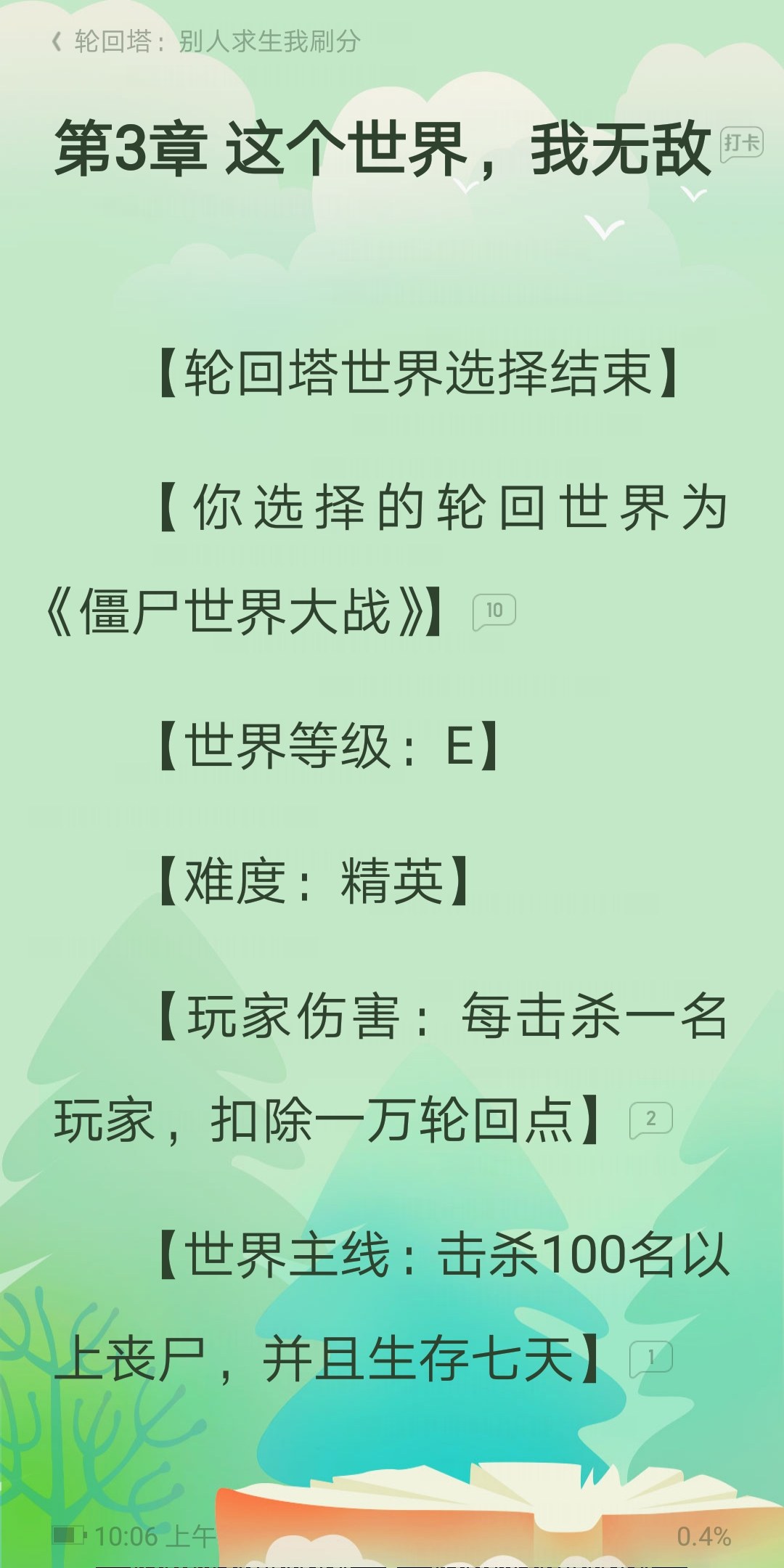 Let's not talk about the nonsense of 2 million reincarnation points to buy a rubbish copy and rubbish guide. The author himself doesn't even remember what the main plot he wrote is. It's a complete mess. He completed the seven-day survival main plot in the first few hours. It's awesome🐮