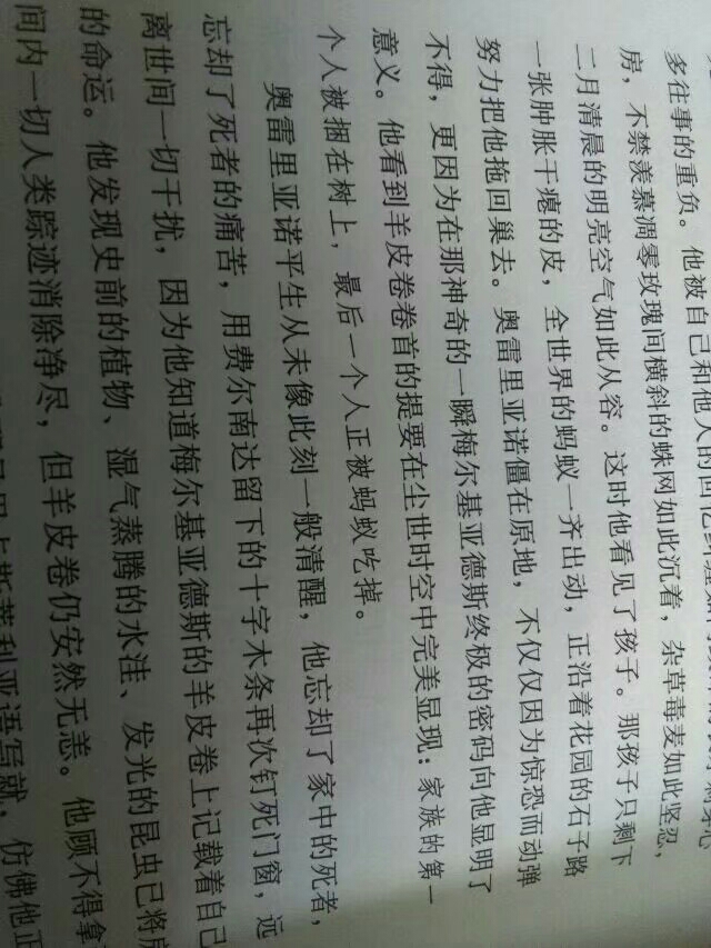 Attracted by the title of the book, I read half of the physical book, but I encountered some parts that I couldn't understand. At first I felt that José Arcadio Buendía's family was free, full of fantasy and longing. But slowly I discovered that everyone actually had different thoughts in their hearts. Arcadio eloped with the gypsies, and Buendia was treated as a madman and tied to a tree... Perhaps they were not understood and complained about. Most of them did not communicate with the outside world. There was a huge iron door separating reality and their hearts. When it slowly closed, the hinges made a mournful cry...