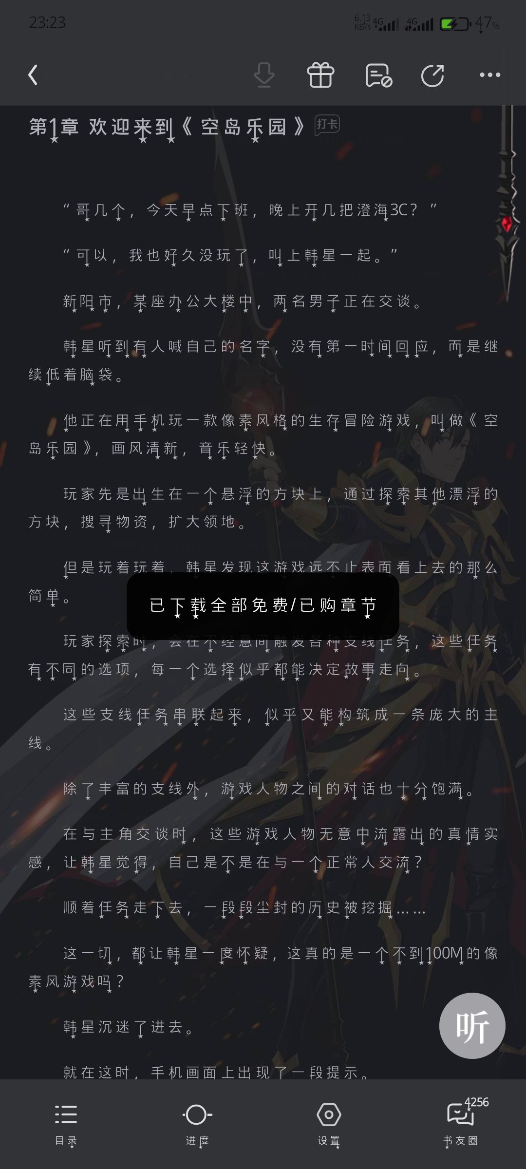 All humans on Blue Star descended into a world without land, and the sky was full of floating islands. Everyone has to choose a career, start over here, and try to survive! You start with a small territory. If you want to survive, you have to land on these mysterious islands, search for resources, expand your territory, and then build your own sky island. The Korean star who just entered the game accidentally activated the only hidden SSS-level talent, 'God-level Craftsman'. Nothing he makes will fail, and everything that passes through his hands can be transformed into a legend. "Successfully made a blunt wooden stick, quality - legendary, characteristics: never broken, with 100% stun effect." "A rusty iron sword has been successfully made, quality - epic, characteristics: indestructible, with 100% tetanus effect." "..." As the survivors explore the outside world, mysteries emerge one after another. Lost civilization, the truth about the broken world... When a horrific natural disaster struck, hundreds of millions of survivors looked at the huge island in the sky, covered with artifact-level engineering props, and almost simultaneously exclaimed, "Look, that's the man who resisted the natural disaster!"