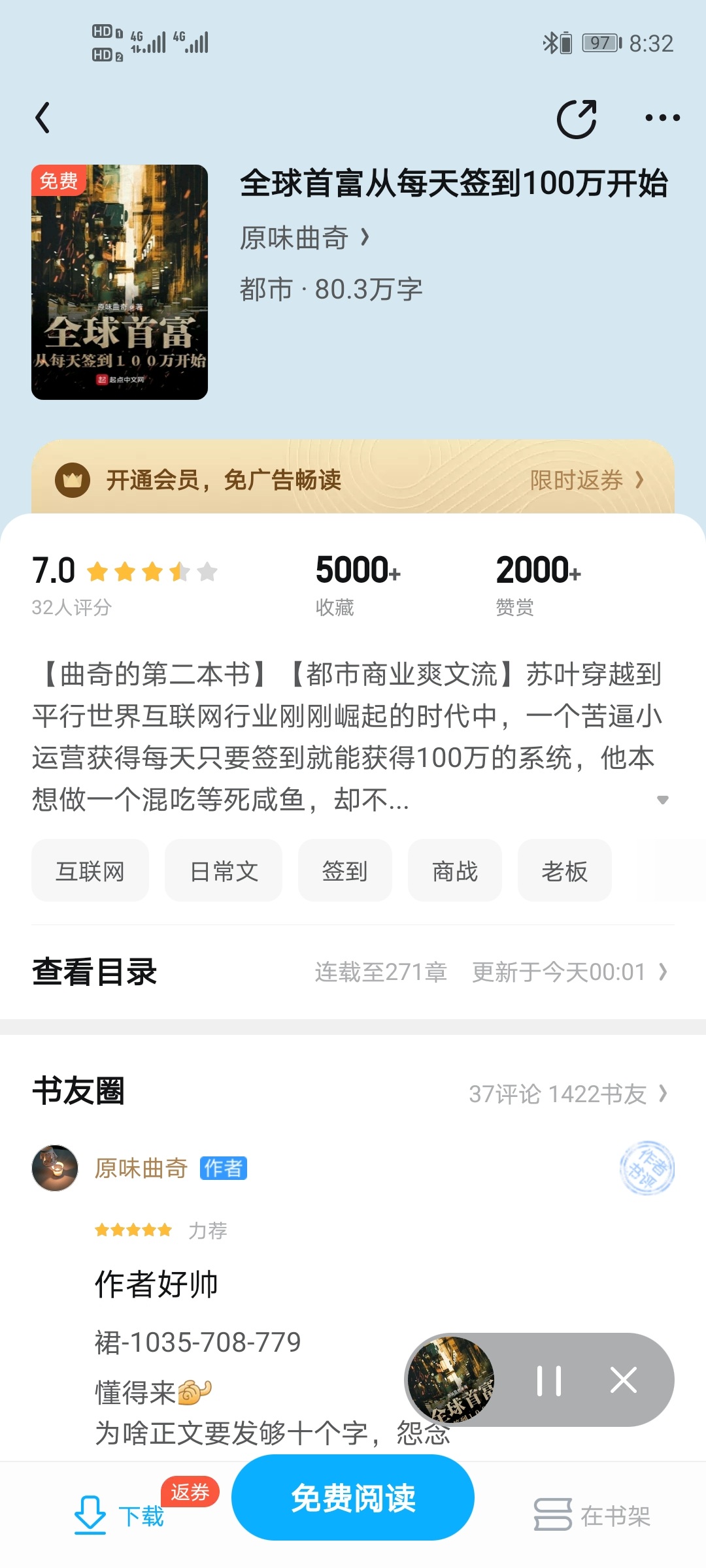 [Cookie's Second Book] [Urban Business Cool Wenliu] Su Ye traveled to a parallel world in an era when the Internet industry was just emerging. A struggling small operator got a system that allowed him to earn 1 million just by signing in every day. He originally wanted to be a salty fish waiting to die, but he had to start with social software and gradually grow into an Internet tycoon dominating the world. Su Ye's Quotations: Oh my God, 996, my company works 9 to 5, weekends, two days off, five insurances and one fund subsidy, many benefits and good benefits [The author has a glassy heart, light spray]