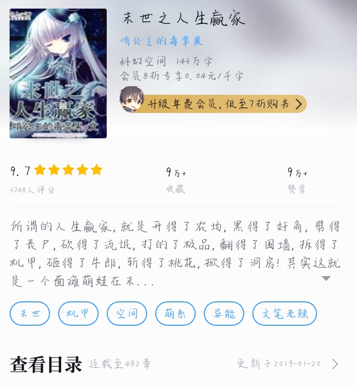 A novel on a female channel, the protagonist is a cute little loli. The perspective of the description may not be in line with the mainstream of male videos, but if you can accept this way of writing, the writing is still good. The end of the world is coming, how to become a real winner in life. (Note, this is this quarterly magazine)