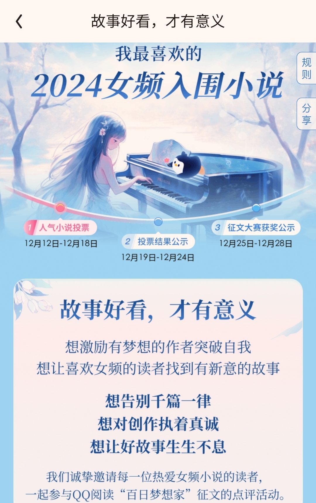 The female channel selection event has begun