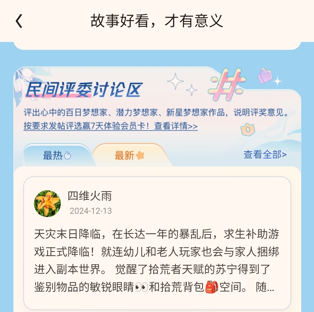 The creativity of this book is good, but the writing is really tender, and the conflict plot is also... Childish. I suggest you put more effort into character creation. The heroine is not fleshed out enough, and it feels too ethereal and soft, as if she can change her character into anything. The storyline is too fast, and the conflicts and intersections between the characters are very exaggerated? Also, why is a woman jealous of the heroine? I feel that the portrayal of women is really too... Crude. It is really boring to use other people's badness to set off the heroine's "reason" and "smartness". Watching it all the way, the heroine is like a golden finger. All kinds of good things come to her. It is interesting to watch, but you will get tired of it if you watch it too much. The difficult description is too simple, which makes people feel that it is just for the sake of pleasure. Writing is difficult. I give you 5 stars. I hope you can work harder and practice more. Come on.
