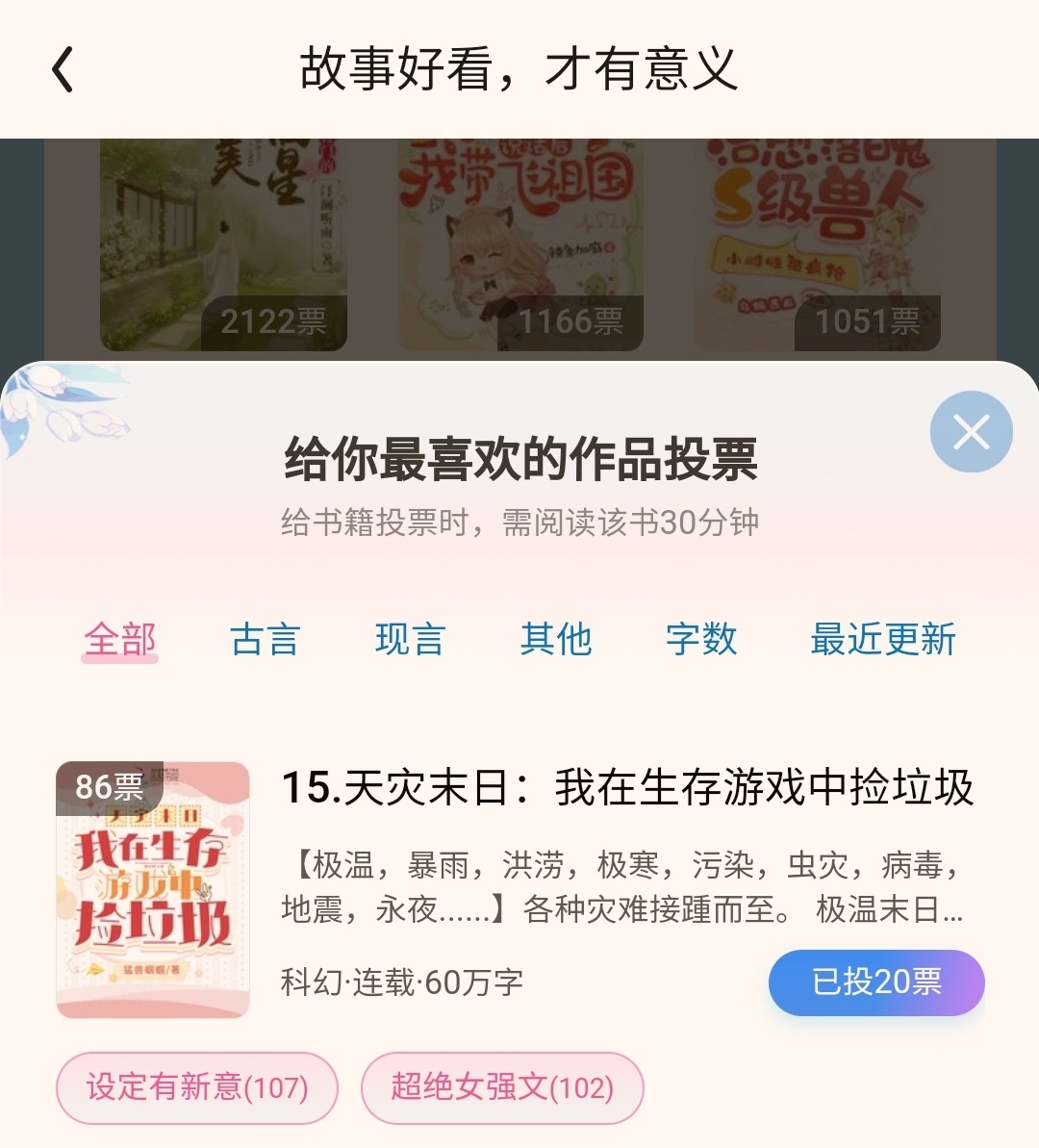 Book lovers, come and vote to support the author. Let us join Suning in various dungeons of the survival game to pick up trash, collect daily necessities, test food, make delicious food, and survive the end of the natural disaster together.