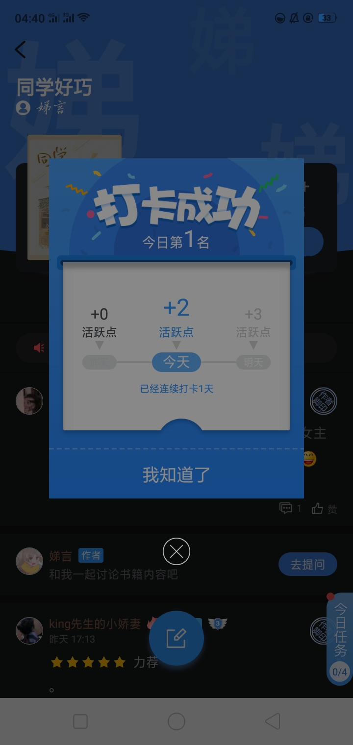 The sun goes down The light in your room is on I have also finished reading my book [Come on and create! ]