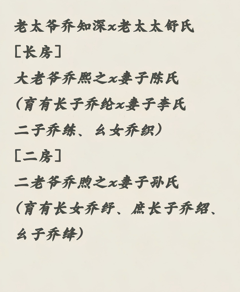 The population of the Hou Mansion is simple and clear, while the population of the Qiao Mansion is a little more complicated. You can see it here. (Of course, it doesn't matter if you can't figure it out, my grandfather's family doesn't have many scenes~)
