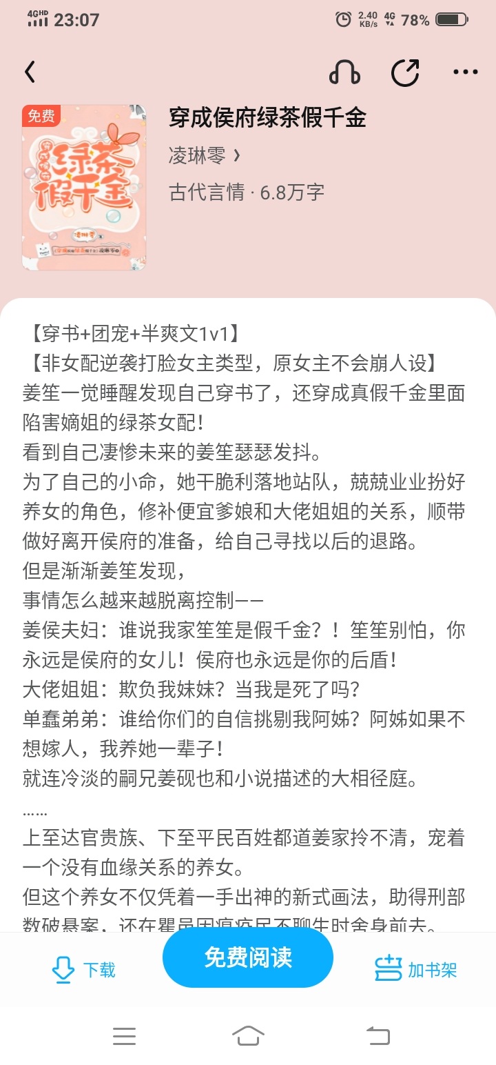 [The type of non-female supporting character counterattacks and slaps the heroine in the face, the original heroine will not collapse the character] Jiang Sheng woke up and found that she had been wearing a book, and she was even dressed as the vicious female supporting character who occupied the magpie's nest in True and False Daughter of Gold! Jiang Sheng trembled when he saw his miserable future. After weighing the pros and cons, she simply took sides, played the role of an adopted daughter conscientiously, repaired the relationship between the cheap parents and the boss sister, and was ready to leave the Hou Mansion to find a way out for herself in the future. But gradually Jiang Sheng discovered that things seemed to be getting out of control - someone provoked Jiang Sheng at the palace banquet, saying that Jiang Sheng was occupying the magpie's nest. Jiang Xian, the real daughter who everyone said was resenting Jiang Sheng, raised her eyebrows slightly: "Bow and apologize." Some people mocked Jiang Sheng as a fake daughter who couldn't afford the first silver building in the capital. Jiang Xian exclaimed: "Give Yunyan Pavilion to my sister." Someone tried to die and held Jiang Sheng hostage. Jiang Xian said coldly: "If you don't want to live, don't live." Jiang Sheng, who had become the treasure in the palm of his sister's hand, said: It feels good to win by lying down. Because the big boss sister gave too much, Jiang Sheng, who had the script in hand, felt uneasy and decided to spoil it! ...Ask Jiang Sheng: What do you think is your biggest cheat after time travel? Answer: There are many big bosses around her, including not only her sister but also her backstage. When she first came to the other world, even though Jiang Sheng tried her best to calm down as quickly as possible, she would occasionally feel panicked when faced with her tragic end in the original book. And when the mystery of one thing was revealed, and the accidental confusion was answered, she suddenly discovered that she was not alone. ... Jiang Sheng always thought that he was traveling through books, but unexpectedly he was returning.