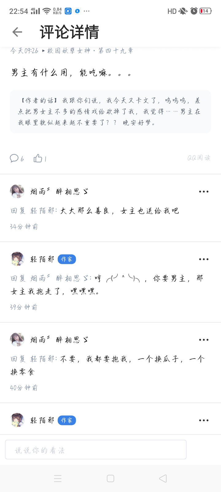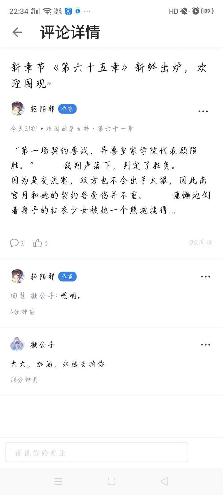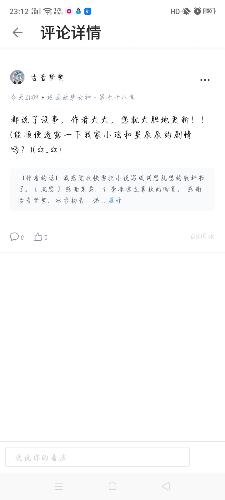 I feel very happy to see that everyone has commented in the book review area. As a chatty author, I feel that it has been a long time since I opened the book and I still haven't commented on it. It's a bit incredible. Clarify your ambition-to finish this book. It's not a scrawl, it's the kind of thing that you write with your heart and work hard. I have been writing books for about two years, and my results are not very good. Looking back suddenly, I want to say something to myself: Don't let down those who really like you. Well, no matter good or bad, persistence is the most important thing. Struggle may be the most beautiful color in the world. Hee hee, I'm just here to talk nonsense, that's right.