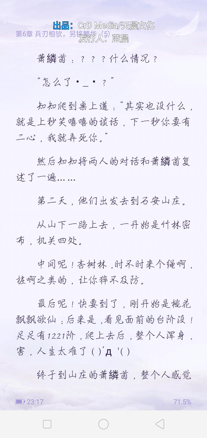Seeing this, I suddenly remembered many things about myself. I don't know what to say. Anyway, I am taking steps step by step and doing a lot of things. I took a fantasy script, but I turned it into a power script and a romance script. The male protagonist I wrote also killed his father, his mother, his brother, his wife and his son. I took a girl who could obviously have everyone's favor and turned it into a man who was careful and deliberate at every step. Obviously she can be happy, but in the end the loser is still the word "love". Also, keep up the good work and don't give up. Your writing is very beautiful and original. Come on!