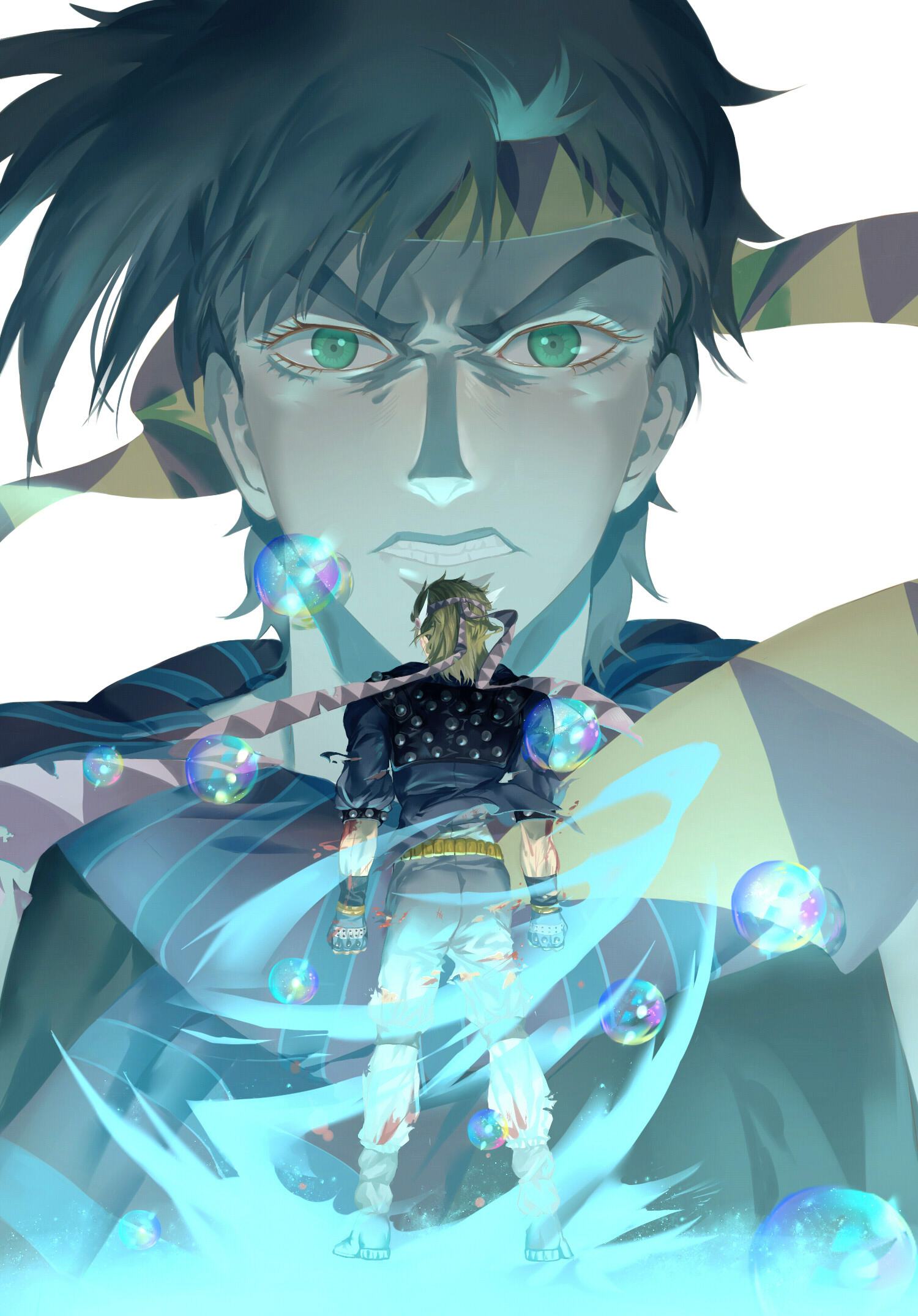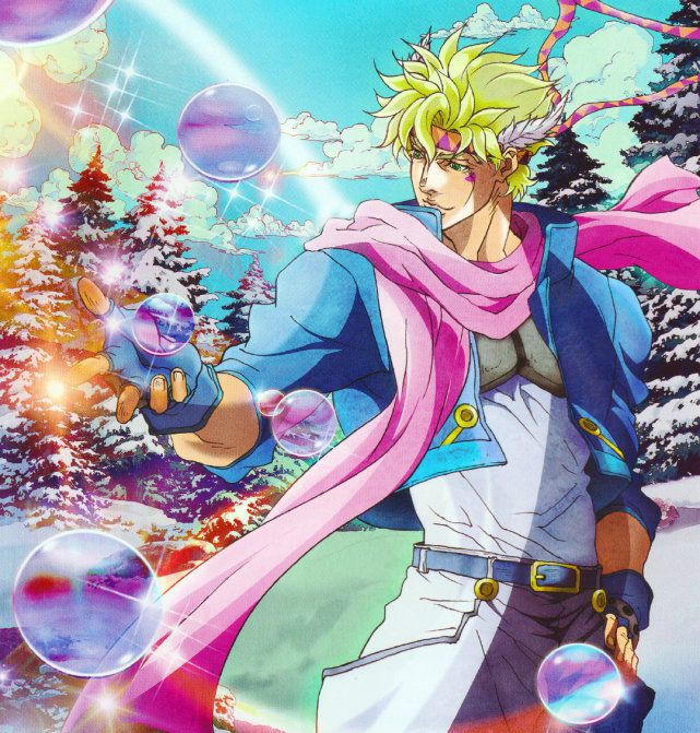 The origin of the name and substitute ability [A man as gorgeous and brilliant as a bubble. ] Name: Magnifico Momento Stand-in form: colored bubbles. Bubbles of different colors have different abilities and can add ripple energy. Panel: Force:? Speed: A Accuracy: B Growth: A Range: B Duration: A Bubble type: Red: The moment of explosion can produce an explosion with a radius of fifty centimeters from the bubble bursting point and a temperature of 160°C. The range can be reduced to a minimum radius of 1 centimeter and a temperature of about 20,000°C. Blue: The explosion instantly turns into countless needles composed of water and scatters in all directions. The power is low and it is difficult to cause fatal injuries unless it hits fragile tissues such as the eyes. Yellow: The explosion instantly produces a strong light comparable to a flash bomb, and has the best conduction of ripples. Green: The explosion creates a high-speed rotating whirlwind, and the combination of two opposite directions can form Kamisha Lan. Transparent: Excellent in transmitting and reflecting light. It has no special abilities. However, after a large number of bubbles are formed, it can form a mirage to confuse others. It can also hit the light to form a laser, which can be combined with yellow bubbles to form a combo.