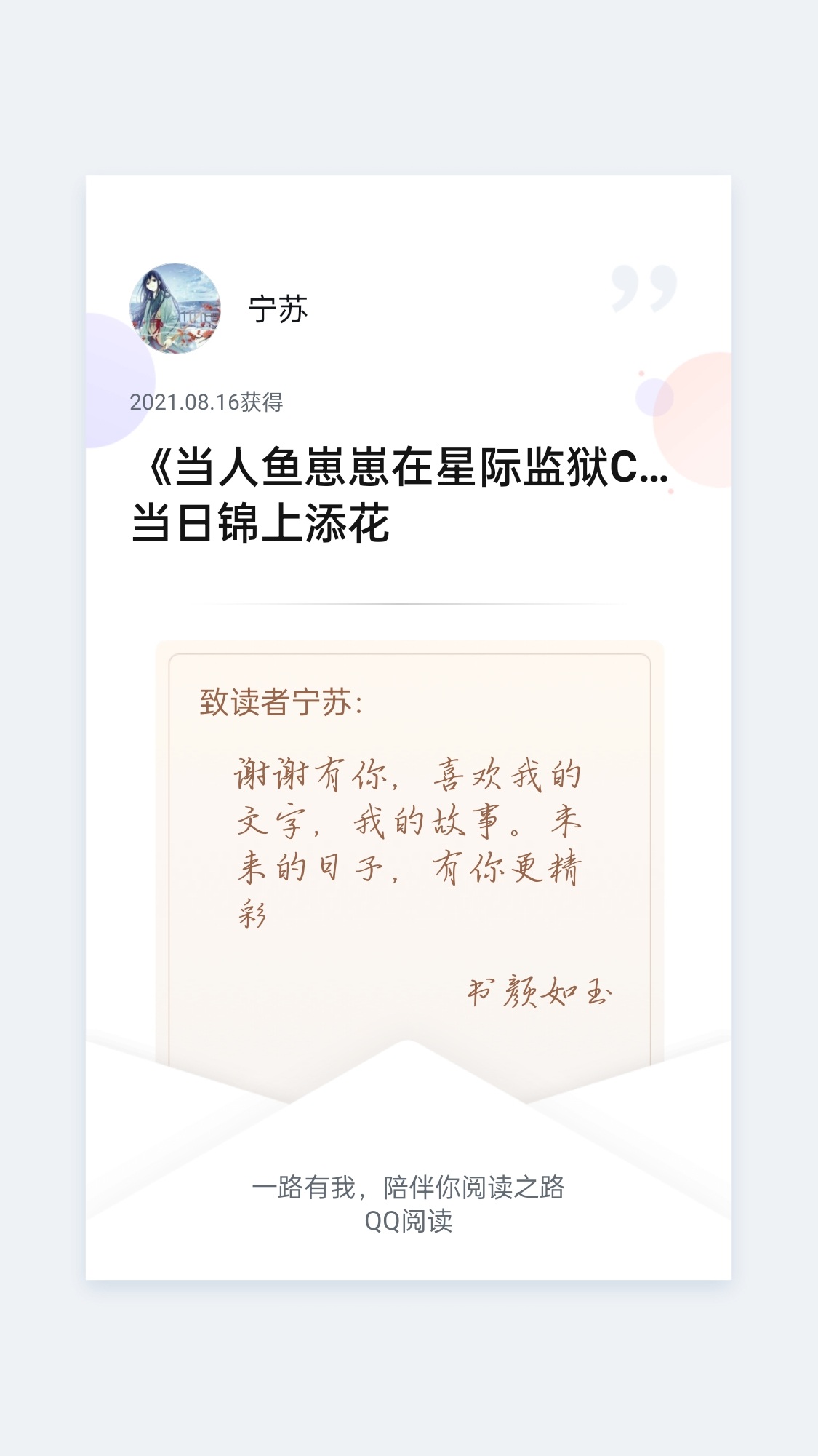 It has been a year since I started reading the author's first book before the Chinese New Year last year. In the past year, I have seen the author's slow growth, from the king to the current mermaid cub. I am very grateful to the author for bringing good works. But I still have to say goodbye, my dear --I will always love your cuteness