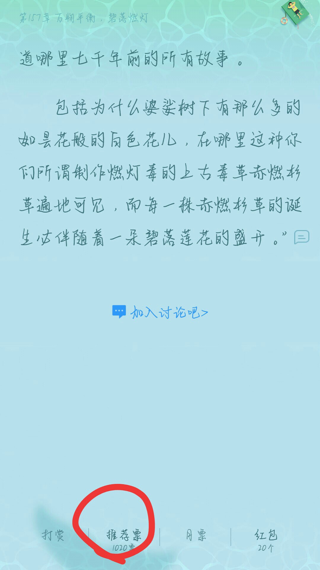 I'm afraid you won't believe me, but I started reading this book because I liked the cover. Then we started to read it, but gradually I found that this book was quite good, so I voted for it. At first I only gave one vote, but then I started to give all my recommendation votes to this book. It's not for anything else, it's just for me and for my updates. This is the first author to add updates for me. No matter what the reason is, I will vote for you. Because I am a person with a bad memory, I set an alarm clock to remind myself to vote for Jiu every day. However, the alarm I set in the past two days was accidentally turned off. In addition, Jiu was out and did not update in the past few days, so I missed a few days of recommendation votes. Later, when I remembered to vote, the active value had been surpassed by Kai Ren. I said it was really an accident! Really!!!