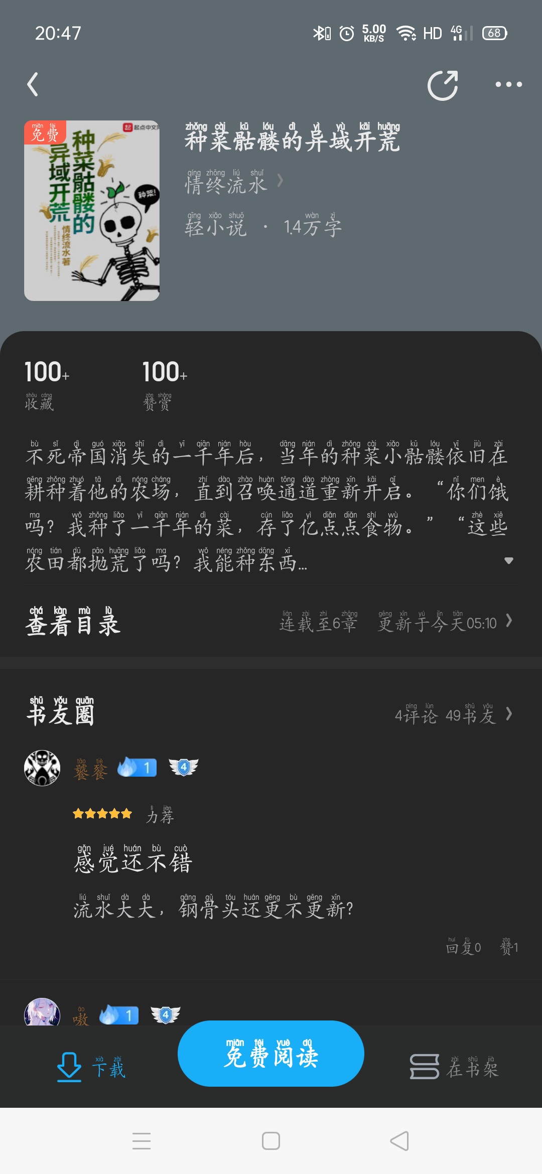The End of Love is currently the best-performing skeleton article. Of course, the author has been a professional skeleton author for more than ten years, and his persistence will eventually pay off. A lighthearted and amusing farming novel, farming in the literal sense, well, this book currently has no female protagonist.