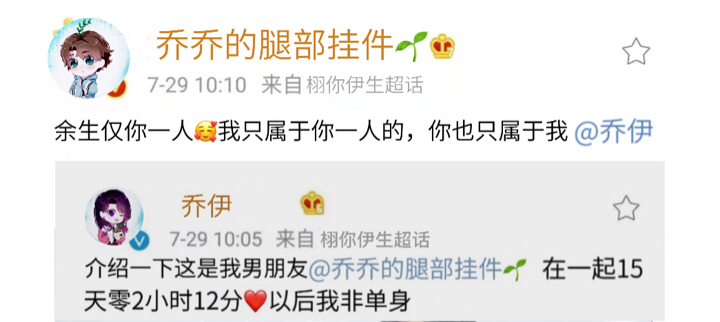 Reporter: What is your relationship with the man in your car? Why is he in your passenger seat? Qiaoqiao: He is my boyfriend -------After the press conference------ Weibo "Joy V: Let me introduce to you this is the leg pendant of my boyfriend @千亿❤️Fifteen days, two hours and twelve minutes of dating. Please remember that I will not be single in the future." "Qiao Qiao's leg pendant 🌱 (hardcore fan): 😽😽You are the only one for the rest of my life🌱I only belong to you, and you only belong to me❤️🌱" #雪尼伊生超话: --Ahhhhhhhhhhhhhhh the cp I knocked on is true! ! ! ! ! ! ! ! ! --Which lady is here to produce food? ! ! ! --It's Chinese New Year! It's Chinese New Year! CP fans celebrate the New Year! Everyone celebrates! --There will be a big update in the circle today to cheer up the two of you! Ps: After reading this, I think there should be an official announcement on Weibo. . . Xiaolulu's Weibo name was randomly chosen by me. . . By the way, I posted a picture