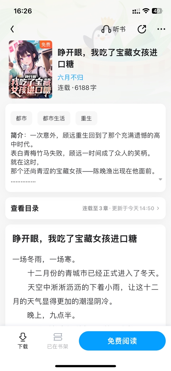 To be honest, this author's writing style has surpassed many well-known authors on the Internet. It is rare to be able to write such gripping daily plots. The plot of just over 10 chapters, whether it is the plot setting or the characters of the protagonist and heroine, makes me feel that it is difficult to be picky. This is the most intuitive embodiment of excellent writing. Content evaluation: This is a novel that is almost not depressing in my opinion. It is also the only novel that I want to make an exception to give 9.5 Points recently.