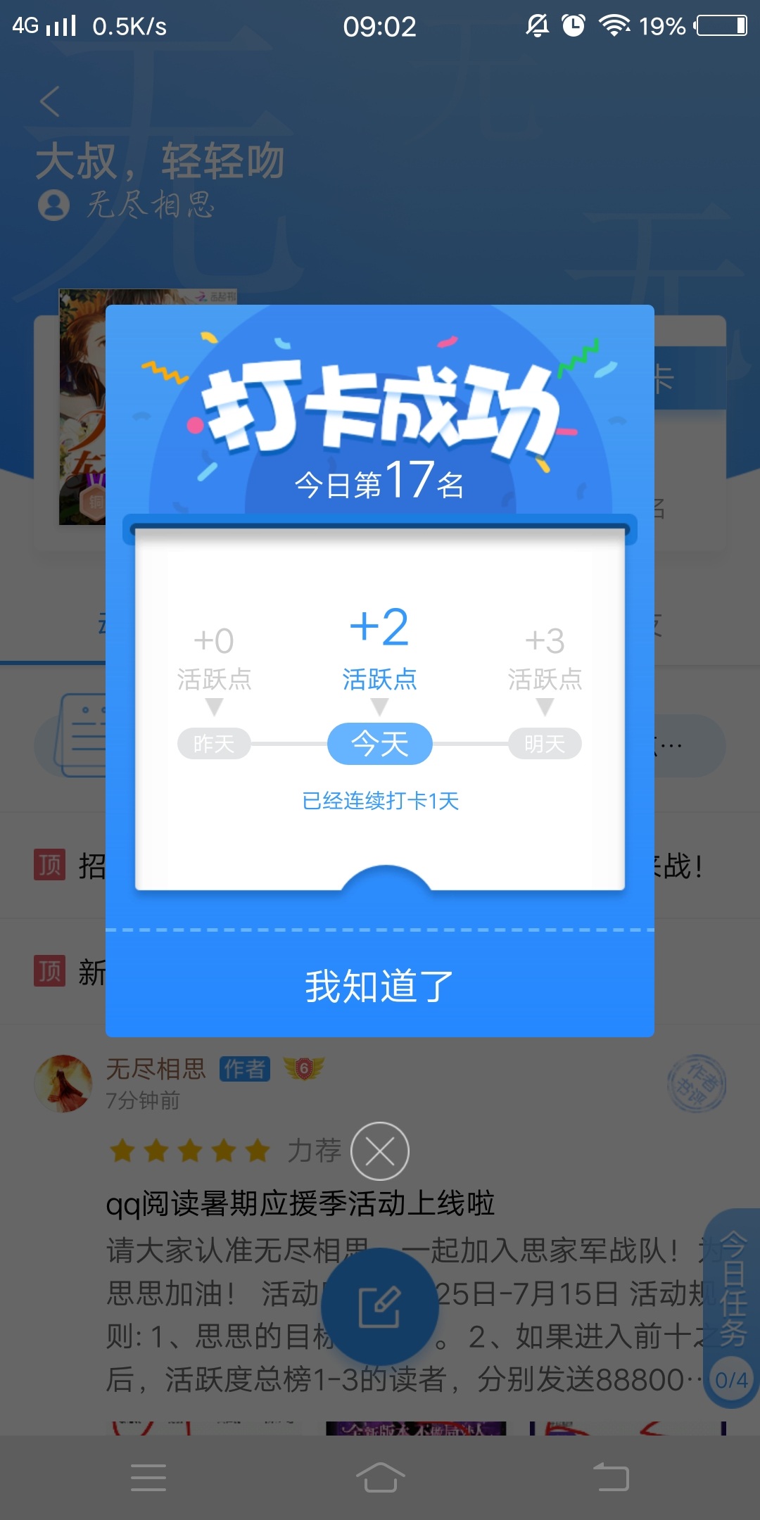 1. Check in every day, and after completing today's task, take a screenshot in the book review area, and 3 people will be randomly selected and sent a red envelope of 100 book coins. Every day, the list will be announced in the comment area. 2. This activity is valid for a long time, and the number of places will be increased later depending on the situation. 3. You must have 100 fan points to participate in the event. No fan points will be invalid. 4. This activity will increase the support value. Those who have the top three check-in times from June 25th to July 15th and join the support group (the same number of times will be prioritized by time) will be rewarded with 6,000 book coins. 5. The daily red envelope is available to everyone. 6. The more you complete today's tasks, the easier it is to win!