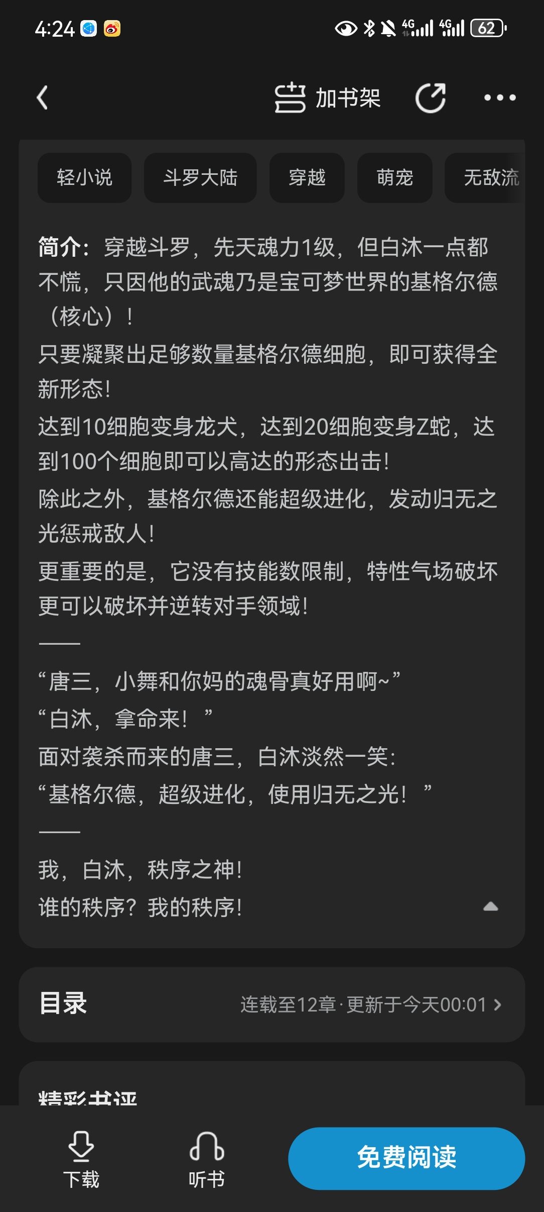 Time Travel Douluo, innate soul power level 1, but Bai Mu is not panic at all, just because his martial soul is the Zygeld (core) of the Pokémon world! As long as a sufficient number of Zygarde cells are condensed, a new form can be obtained! When you reach 10 cells, you transform into a Dragon Dog, when you reach 50 cells, you transform into a Z Snake, and when you reach 100 cells, you can attack in Gundam form! In addition, Zygarde can also super evolve and activate the light of nothingness to punish the enemy! More importantly, it has no limit on the number of skills, and its characteristic aura destruction can destroy and reverse the opponent's field! -- "Tang San, Xiao Wu and your mother's soul bones are so useful~" "Bai Mu, take your life!" Facing the attacking Tang San, Bai Mu smiled calmly: "Zygarde, super evolve, use the light of nothingness!" -- I, Bai Mu, the God of Order! Whose order? My order! ---- [Three abuses, self-interest, extreme, one thing in front of others and another behind the scenes] [Don't eat beef] [The Heavenly Palace order that belongs exclusively to the protagonist] [Collect all]