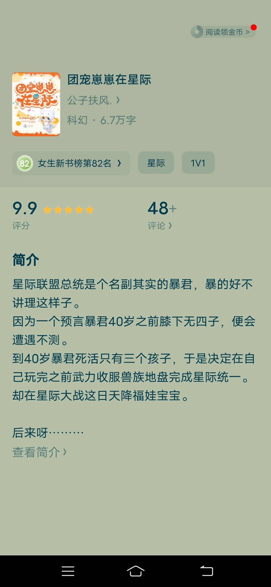 There are many favorite characters, but when it comes to my favorite character in this book, there must be only one answer, and that is Ji Xinxin! From the moment she appeared as a cute character to now, even though she is cute, she is still different from ordinary children. She has so many magical abilities. She can open coded doors with her bare hands, cure the president's weird disease, and cure other people's diseases at will. Most importantly, she is so cute and well-behaved! I hope that in the future, the President of the Interstellar Alliance will no longer doubt her and truly dote on her, as well as her brother Nuo An