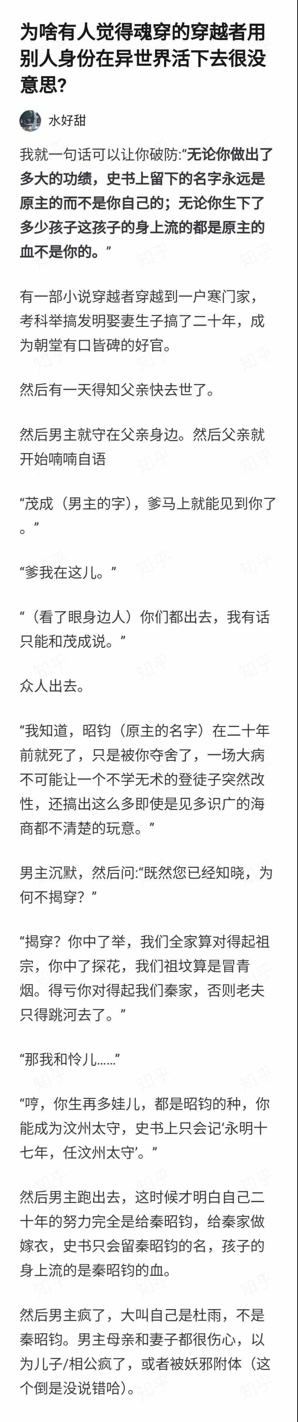 To be honest, I don't particularly recommend soul traveling, because in the end it doesn't belong to you. What do you think you should do, change it back to your original name? Or commit suicide? Even if I don't recommend it, think about it that neither your wife nor your children really belong to you. Tsk, what a shame!