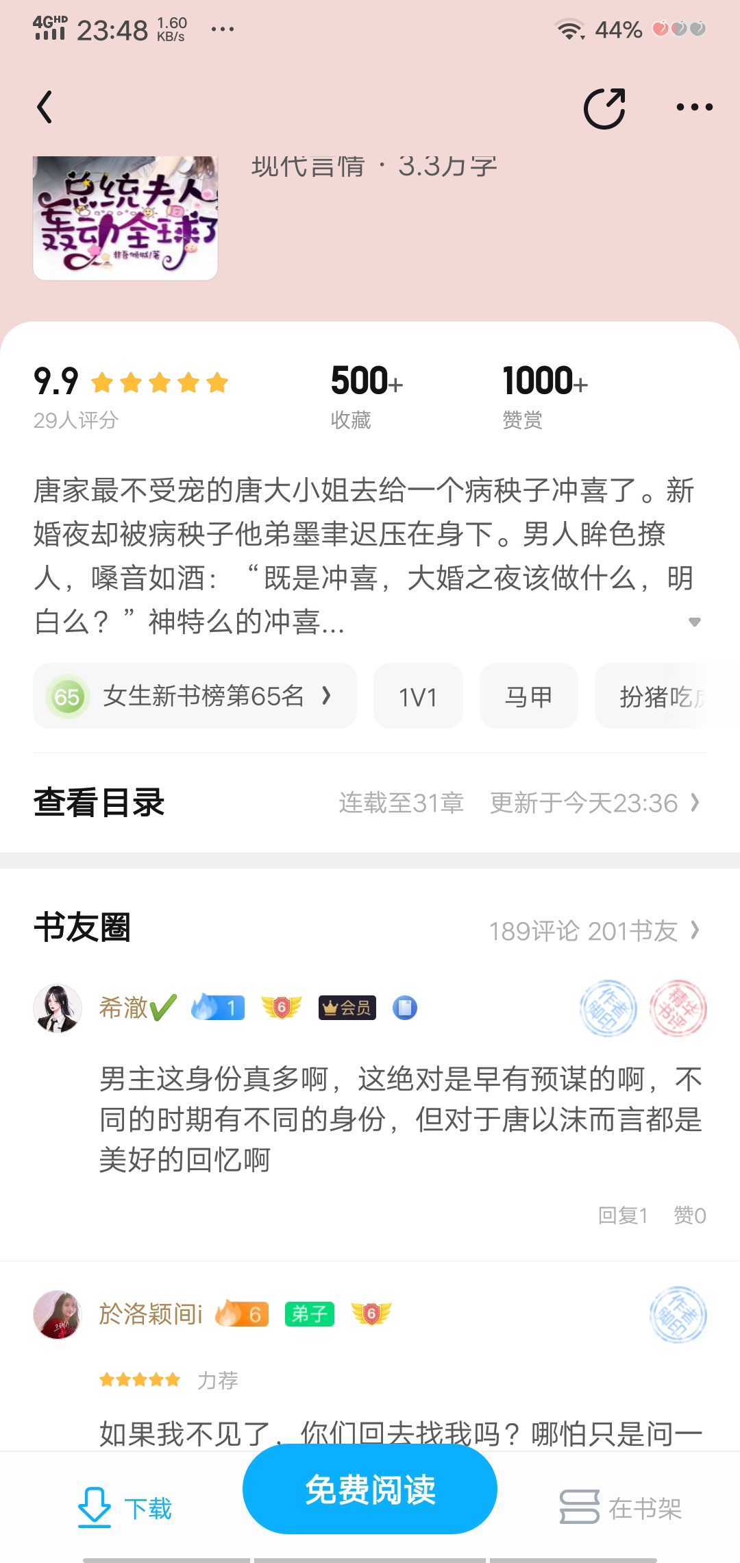 [Full book free + two-way secret love + group pet vest] Miss Tang, the most unpopular girl in the Tang family, went to marry a sick man. On the wedding night, he was pinned down by the sick brother Mo Yuchi. The man's eyes were sultry and his voice was like wine: "Since it's a wedding, what should I do on the wedding night? Do you understand?" God is so happy! She had to leave the Mo family quickly. "Second Young Master, madam wants a divorce." "How dare she!?" The next day, the Imperial President made a high-profile appearance in the capital, captured the escaped Mrs. Mo and forced her into a corner: "Did I say that once you run away, you will have one, and if you run twice, you will have a pair, huh?" Tang Yimo: "..." Who will tell her that the Imperial President Mao and her husband look exactly the same? ... Later, in order to win over his beloved wife, the president replaced the green plants in the city with gypsophila in just one night. All the celebrities were angry. Tang Yimo was just a vase with no background. How could she make the President go crazy for her? It wasn't until Tang Yimo's vests were pulled out one by one that the whole world was shocked! The ladies are crying! [Sweet 1v1]
