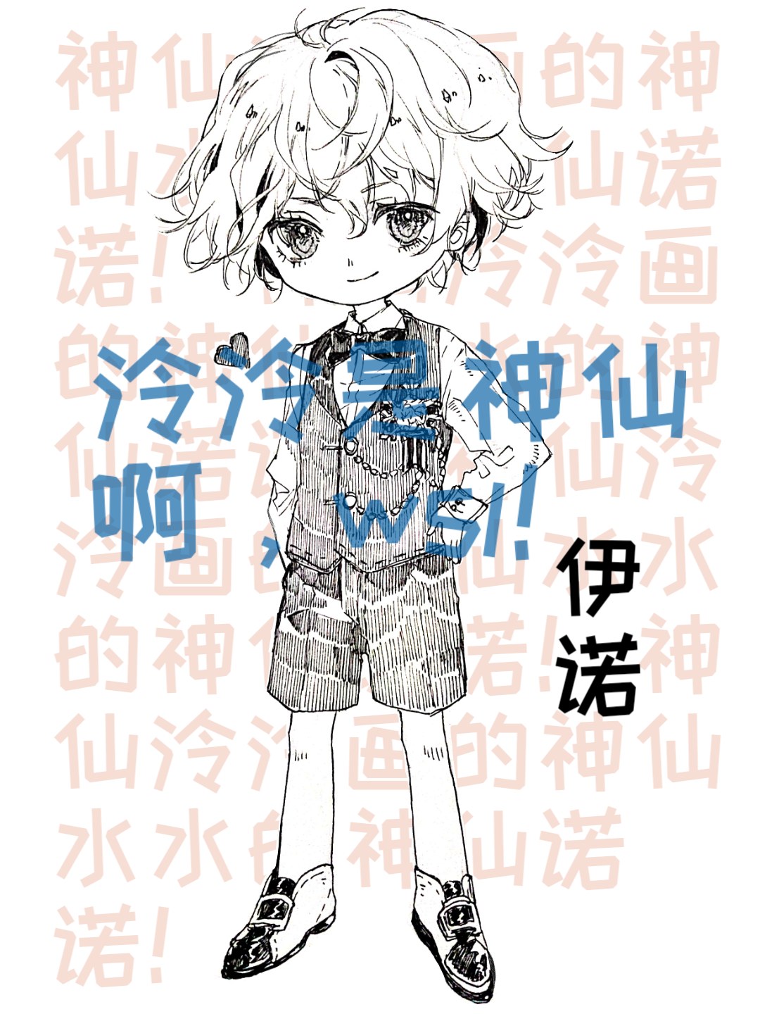 Nono from the Shuishui family is a fairy baby! Nono is a super cute young master, super noble! I made an appointment with the fairy Ling Ling for the line drawing, and thanks to the fact that Ling Ling is a fairy, she was able to draw such a cute Nono against my rubbish design! I painted the colors blindly. It's a magical line drawing that can make people feel happy even if I paint it casually. Then there were too many watermarks, hahahahahahahahahahaha! Now that the pictures are there, there will be rewards for our small folk activities next time. Everyone, come to our death brigade to hang out! Finally, follow my slogan and shout, Nono is invincible and super cute in the universe!