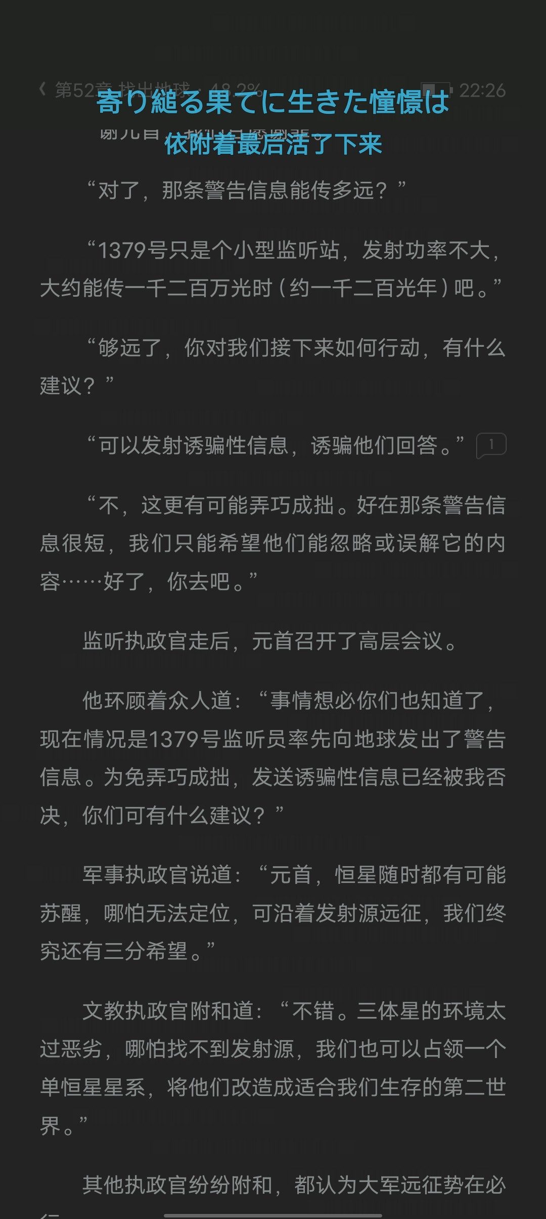 Okay, I just want to ask why you didn't mention the Law of the Dark Forest at the beginning. If you don't say it at the beginning, the protagonist will look like an idiot later on.
