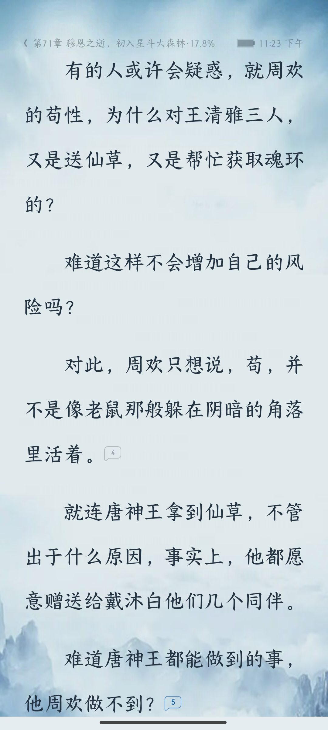 I'm very confused, why do you want to make casual cultivators so brainless? They have no resources. They have been cautious since they were young. They have reached that level of cultivation. They also form a team to hunt hybrid beasts to earn resources. When they see you are young and have a beautiful woman with you, they want to rob you. There are people hunting hybrid beasts in that place. It is impossible for ordinary people to be there. Plus, the clothes you wear look like nobles or rich people. Why do they think you are easy to bully and want to rob you? At level 30, the protagonist needs to hunt soul beasts to get a soul ring upgrade. He has to go alone to hunt the soul beasts. This ***, all the Douluo Dalu fanfics I have read do not have this kind of operation at all. They are all about high-level people hunting with low-level people. If you have a low level and go alone, what should you do if you encounter a high-level soul beast? What should you do if a soul beast discovers you when you hunt a soul beast and absorb a soul ring? Does the protagonist's behavior in the end have anything to do with practicing cultivation? Why is it said that the protagonist cultivates silently? Does the author have any misunderstanding about practicing cultivation to eternity?