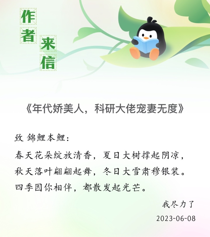 The writing so far is very good. I hope that the author of the emotional drama in the future will not make the protagonist fall deeply in love all at once, but can make the two of them have a long-term relationship, and have a tacit understanding in every move, the kind that can make the corners of people's mouths curl up when they look at it. The male protagonist should not develop like Tianliang Wangpo, who is domineering, greasy and inexplicably jealous. Now he is rational and will be attracted to the heroine in the future and appreciates the heroine without making a sound to defend the heroine, which makes the heroine feel safe enough. The heroine is not in love but lives a good life and has her own career. It is better to have a love that is evenly matched between the two. 🥳 The period novels written by the author are quite immersive. If the emotional drama is based on a formula and takes up a large proportion of the page, it would be really uncomfortable to watch the love without logic. It would be better not to have a male protagonist🥲 I don't mean to provide writing guidance, it's just a suggestion. After all, writing is not easy, and it's even more difficult to write well, so keep up the good work! 🌸🌸🌸🌸🌸🌸🌸🌸🌸🌸