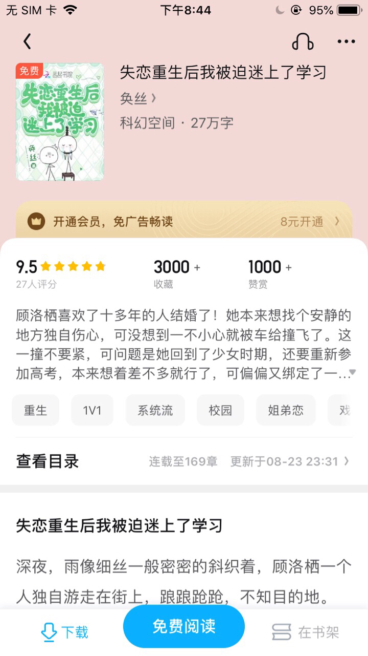 The person Gu Luoqi has liked for more than ten years got married! She originally wanted to find a quiet place to grieve alone, but she didn't expect to be hit by a car accidentally. This collision didn't matter, but the problem was that she had returned to her teenage years and had to take the college entrance examination again. She originally thought that would be enough, but she was bound to a strict system that supervised her to study and work hard every day, so she embarked on the path of forced study. [Host, you have two hours to complete these assignments. The system sounds indifferent. Gu Luoqi: "..." She was planning to be lazy. Oh my god, she just fell out of love. She did something wrong... "Host, the morning reading task has been started." "Host, it's dinner time." ... Someday. A certain system member who saw Gu Luoqi being a nymphomaniac spoke righteously: "Host, early love is not good for learning." Gu Luoqi said with a serious face: "Well, I won't fall in love prematurely." Just kidding, do we rice cooks need to fall in love? And she still has to study hard. Soon after. "Host, you are an adult and can fall in love." The system saw the earnest advice from someone who was already addicted to studying and could not extricate himself. Someone was hunched over his desk writing without raising his head: "Puppy love is not good for learning." "Your future boyfriend will study well and it will not affect you." The system did not change its expression. Gu Luoqi: "..." The little guy has quite a double standard. At this time, someone walked into the door, with aggrieved eyes: "Don't you like me..." Gu Luoqi: "..." Mom, I'm so scared, someone come and save me!