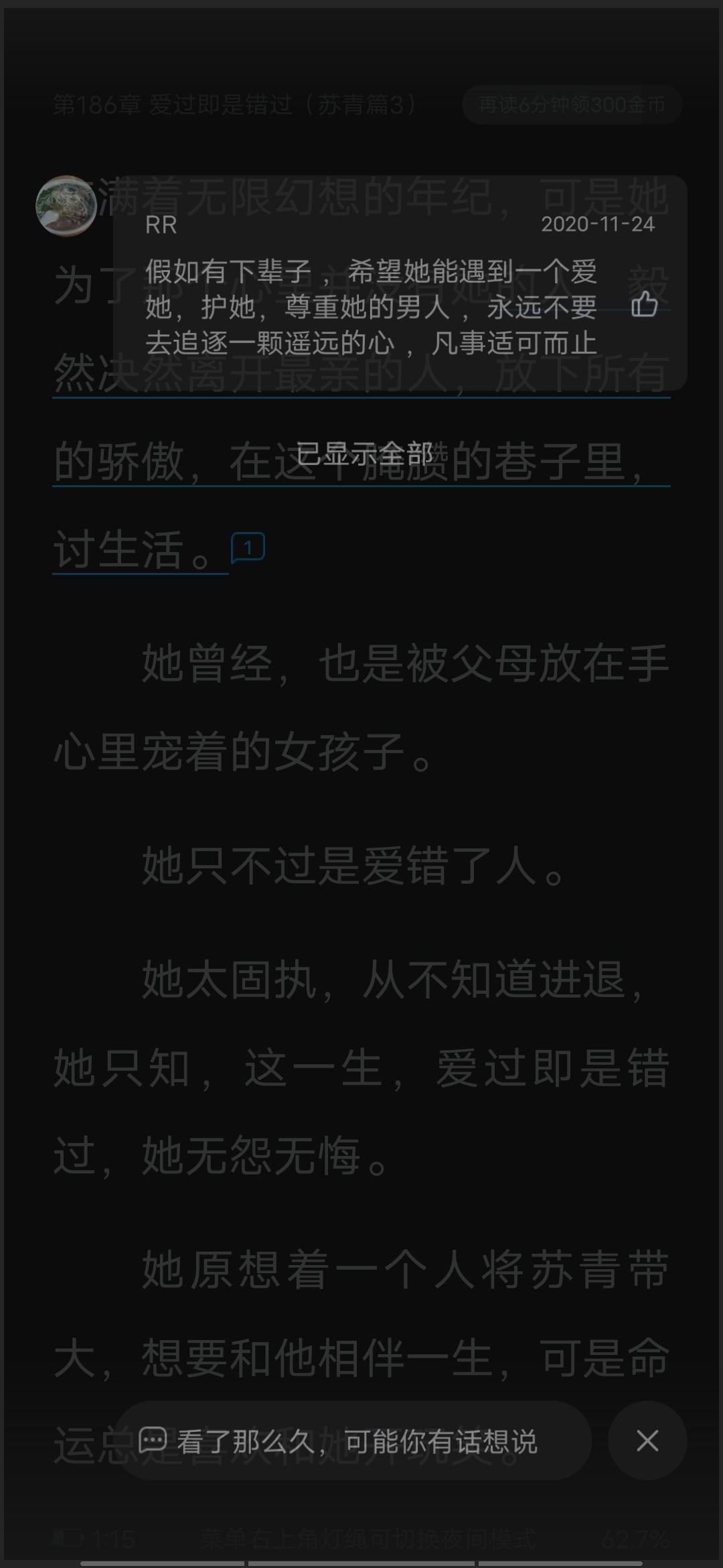 Super pretty! I agree with what the cutie downstairs said. This childhood sweetheart novel is really different and not childish. Most of the ones I have read revolve around campus plots and then a lot of White Lotus Green Tea likes the male protagonist acting like a monster. But this one does not. Most of the plot revolves around Lu Chen and Lin Qingqing. Watching how Qing Qingqing heals Lu Chen gives him a lot of warmth. This is a sweet love story about each other. I haven't cried while reading a book in a long time. This book made me make an exception. The love between Lu's father and mother's only you is very touching. It's heartbreaking that Xia Nini (?? I forgot her name😅) has to work hard to get into college and wait for her father to come back. Finally, there's Lu Zhixu! Oh my God~ I cry whenever he appears😭 My whole heart breaks for him💔 The male protagonist is the female protagonist, and the second male lead makes readers feel distressed. To be honest, I often love the second male lead and then forget about them. Hahahaha. Lu Zhixu is one of the few male protagonists who makes me feel unforgettable. Even after a long, long time, I will still remember him. I was tamed by him 😢 I read a book and there is a sentence in it that I quite like: "There are so many people in this world who ask for nothing, but they all have to endure it. A lifetime is enough to get through it." Yes, there are so many people who ask for nothing, but not many people can still smile and bless generously even if they are crying. "Lin Qingqing must be happy." 💔 Life is actually very short, but longing for it is very long. A male lead actor I like once said something like this: "Human, I have to give my all to one person once in my life. I'm a bit lazy. Once is enough. It's so unforgettable. It burns all the passion and temperature. I can only spend it once in my life." I'm glad that the author didn't force a cp for Lu Zhixu at the end. If so, it would be an insult to him 😅 How can a girl who has been in love for a whole youth let go so easily? That is the girl he did not hesitate to sacrifice his life to protect carefully. There are not so many perfect things in life. I am not saying that I want to curse Lu Zhixu, but I think there is a high possibility that he will be orphaned in this life. Hahahaha The most impressive thing is that he said that he wanted to love Lin Qingqing for the rest of his life, but she didn't want it, but she didn't want it, but she didn't want it 😭😭😭 At the end, he also said that he would be happy, secretly paying attention to her, secretly liking her, and then secretly forgetting her 😭😭😭😭 where Lin Qingqing couldn't see her. His love could only be secret from the beginning. He did nothing wrong, it just came late. Lin Qingqing is Lu Chen's little angel Lu Zhixing is Su Qing's light Lin Zicong is Fu Shuang's salvation But Lu Zhixu has nothing. It's so sad. I sincerely hope that he can meet Lin Qingqing earlier in another parallel world 🙏 I don't know why I suddenly feel that Mayday's "good" is very consistent with Lu Zhixu's mood: No matter how long life is, the fireworks fall from the corners of my eyes. No matter how big the world is, the smiles you and I stare at... We all have to take good care of ourselves. It's so good that I regret that I can't disturb it. Live a good life and grow old well. Pretend that I have forgotten you 😢