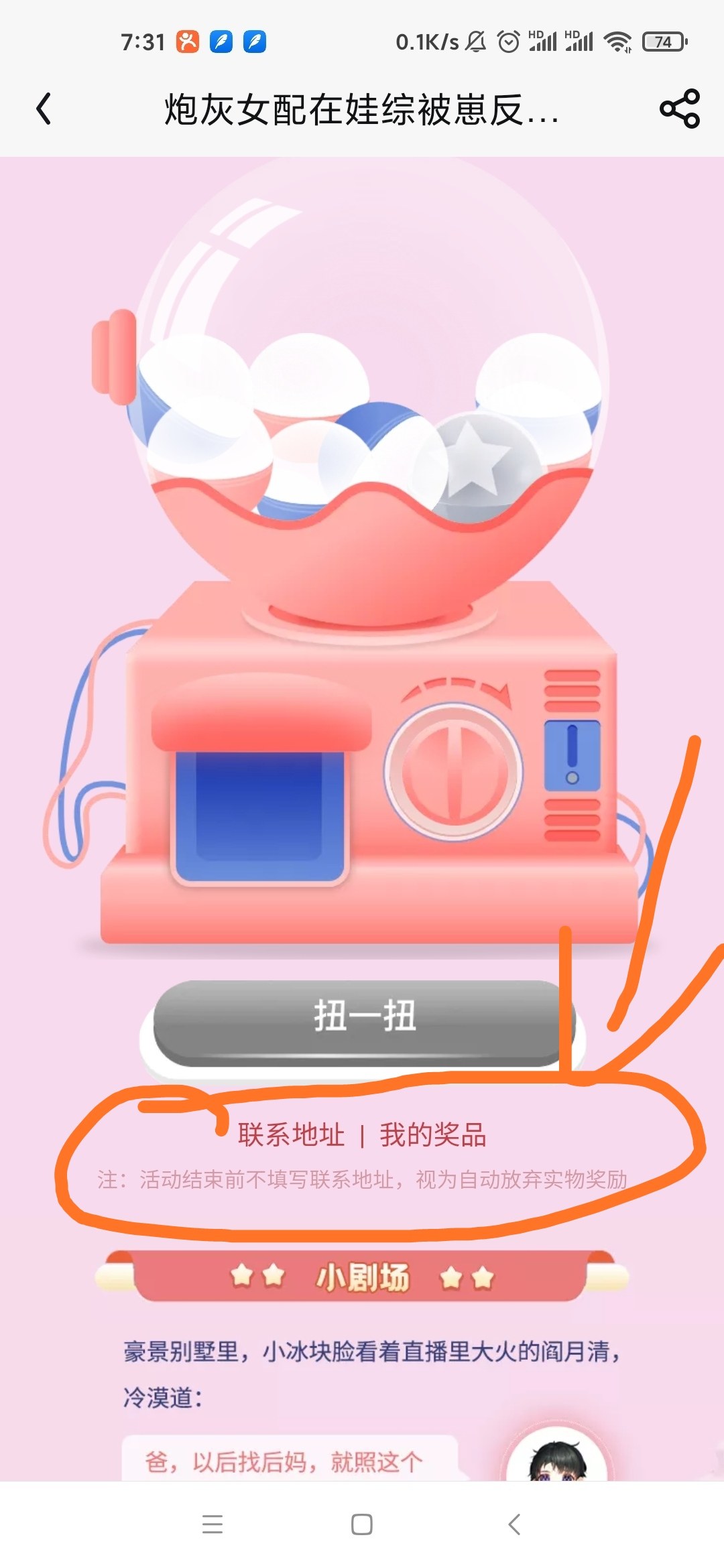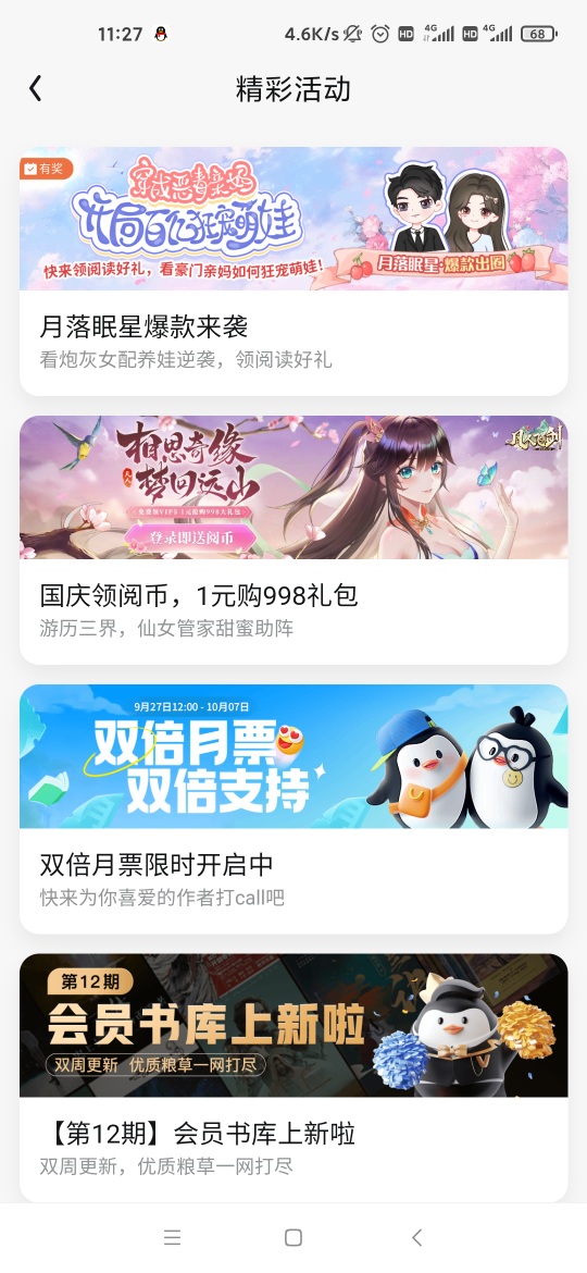 There are many babies who still don't know where to enter the activity, look here. 1. Select "My" in the lower right corner, and you can see Yueqing's activity link in all activities. (Picture 1) 2. Add the bookshelf to the activity list and complete the reading check-in task to get the number of lucky draws. If you want to check in, just check in the chapter title of each chapter. There is a card word behind the chapter title. (Figure 2) 3. The baby who wins the prize can directly fill in the address below and submit it. If there are bugs that have not been submitted, you can go directly to the book group to find the author's supplementary address. Book group 242247790, thank you for accompanying me all the way.