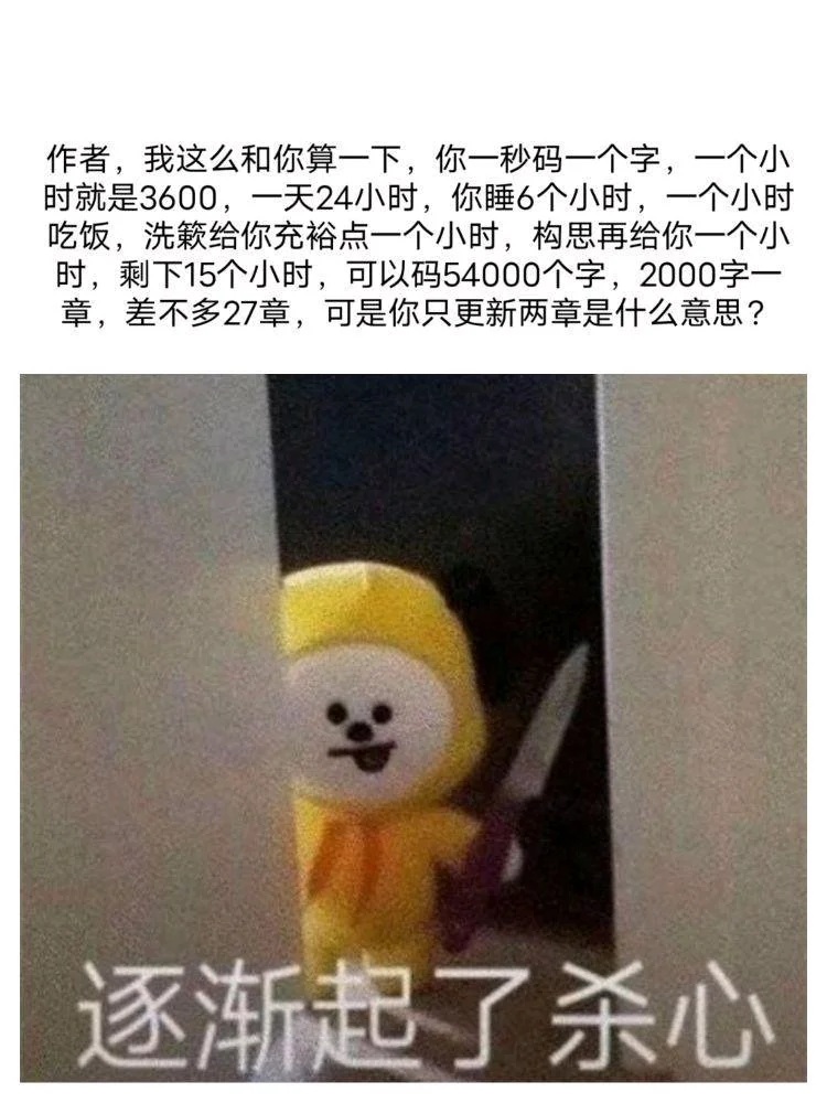 Author, how could you fall asleep at your age when you are starting out? Get up quickly and code to post. Don't be too stressed. Let's write a hundred chapters a day.