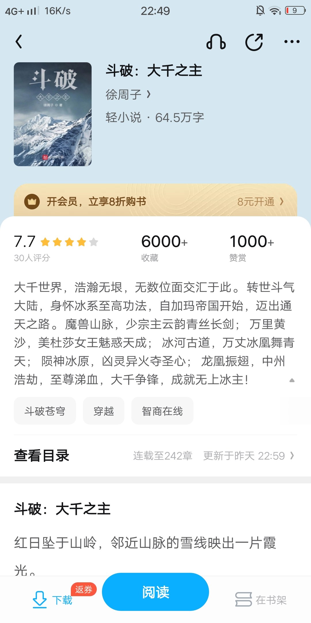 Dou Po: The Great Thousand Lords, I skipped it when I first read it. There was a shortage of books later on, so I just took a look at it. I found that this book is very well written, and some of the holes that were left unfilled in the original work were filled in. The emotional scenes of the male protagonist are also very well written. It is not the kind of mindless love. Currently, I am only in a relationship with Yun Yun. From the introduction, it should be The disadvantage of having two female protagonists is that this book is a slow-burning one. Whether it is the plot or the emotions, the book is written very slowly, but it is also very comfortable to read because of this. The protagonist does not force Xiao Yan's chance, and "it also has a happy ending for Hai Bodong and Die." The protagonist and the heroine slowly develop feelings for each other, and they are not the kind who can't walk when they see a woman. I hope all book friends can go to Kangkang, it's really good.