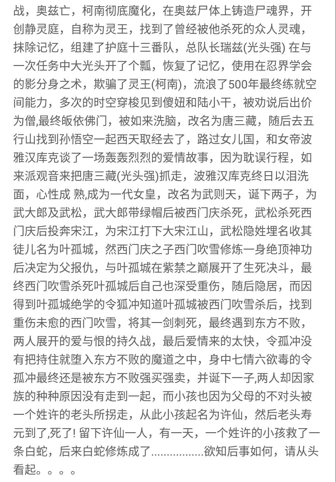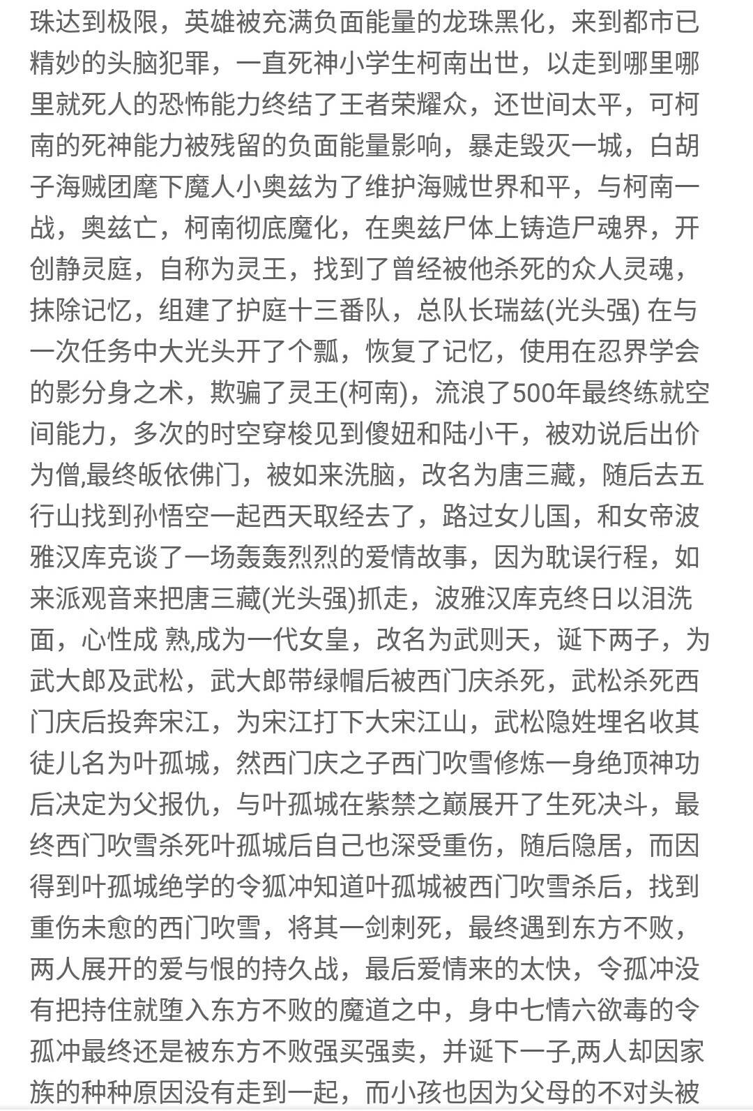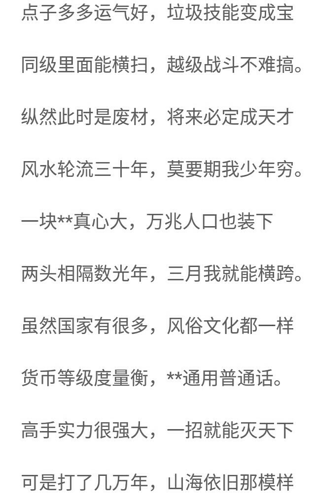 Welcome to join the What to Do If You Accidentally Explode the Earth book club group, group chat number: 961190958 ?0?2 Inner Universe: Body Refining (Create a physique that can accommodate spiritual energy) The day after tomorrow (the initial birth of spiritual power from the body) Innate (spiritual power released) Foundation building (casting Dantian, staying in the air for a short period of time) Golden elixir (the golden elixir is born from the Dantian, the quality of the golden elixir depends on the foundation of the foundation, and the initial flight) Yuan Shen (preliminary use of the power of the soul, comprehension of the field) Out of body (the soul is separated from the body) Split soul (external incarnation) Overcoming the tribulation (physical transformation, beginning to develop the domain towards a small secret realm) King's Realm (the small secret realm is created, and it feeds back to itself. The stronger the secret realm, the stronger the strength. At the same time, I am the master in the secret realm) Imperial Realm (the small secret realm is upgraded to a cave) Little Holy Realm (the cave heaven turns into a blessed land, the body transforms) Great Saint Realm (use the power of the cave in the body to fight against the enemy) The Great Emperor Realm (the cave sky transforms into a small world, the body begins to transform, absorbs a higher level of energy, and completes the transformation). This stage is divided into two levels, the inner universe and the outer universe. At the same level, cultivators in the inner universe are stronger than those in the outer universe. Human immortals, earth immortals, heavenly immortals, (bottleneck) Xuanxian, Jinxian, (bottleneck) Taiyi Celestial Immortal, Taiyi Xuanxian, Taiyi Golden Immortal, (bottleneck) Daluo Jinxian (the Daluo Jinxian stage of human immortality is just an increase in cultivation and the gap in strength) Immortal King (sacrifice and refine the natal immortal weapon) Immortal Emperor (understand the way of heaven, practice the power of containing the law) Immortal Emperor (with the help of the power of the law, the physique is initially formed) Immortal Lord (the power of practicing law) Immortal Ancestor (equivalent to Heavenly Dao) Dominate (control all things in the universe, none now) Inner Universe: White Slate, Bronze, Platinum, Purple Glory, Legend, Epic, Imperial Weapon. Outer Universe: Immortal Weapons (low-level, intermediate, high-level, top-level) Law Weapons (Ghost Beads, Fire Beads, Fantasy Beads...). Lin Bei: 30252, middle stage of Immortal Ancestor, weapon transformer, follow one's heart, dig, scheming, housewife, calf protector, innate magical power: infinite cell division, bloodline power: Yinglong (intermediate level) Leng Wushuang: 17, middle stage of foundation building, bronze weapon modifier, arrogant, likes to trick Lin Bei, cold, second grade, bloodline power: power of ice flame, hidden bloodline: appearance of ice phoenix (elementary level) Lin Hai: 30251, the late Immortal King, the first emperor of the Shenlong Empire, nicknamed Zulong, scheming, sinister, bloodline power: Zhulong (complete body), innate magical power: Faxiang Heaven and Earth Lin Fengyi: 26, in the early stage of the golden elixir, master of mecha manufacturing, aloof, masculine, bloodline power: Candle Dragon Aspect (elementary), innate magical power: three flavors of true fire Lin Long: 1325, in the middle period of the Great Sage, the emperor of the Shenlong Empire is now named War Dragon. He is bold and cautious. The power of bloodline: the aspect of the candle dragon (advanced). Innate magical power: innate combat body. Leng Ruohan: 29, in the early stage of the Golden Elixir, supervisor of the Karma Star Uncarded City Supervision Bureau, eldest daughter of the collateral branch of the Leng family, cousin Leng Wushuang, aloof, cautious, with the power of blood: the power of ice flames Lin Hong: 5425, in the early stage of the emperor, a general who suppresses demons, violent, cautious, bloodline power: candle dragon form (advanced), innate magical power: the power of space Thunder Cloud: 263, the middle stage of Yuanshen (the late stage of the original Tribulation), the president of Kama Star General Supervision Bureau, lustful, afraid of childhood sweethearts, protection against shortcomings, justice, the power of blood: Thunder God Dharma (mid stage) Song Yao: 261, in the early stage of the Tribulation, assistant to the president of the Karma Star Directorate Bureau, aloof, protective, stingy, innate magical power: the power of the earth, the power of blood: Houtu bloodline (mid-term) Euro breaking the sky: 15276, the peak of the emperor, the great devil breaking the sky, destruction, doing whatever you want, holding grudges, innate magical power: the power of darkness, the power of blood: the magic phase of heaven (complete body) Shangguan Feimo: 1335, in the middle stage of the Great Sage, the director of the Empire Supervision Bureau, the madman who protects his sister, the power of blood: the appearance of the ice phoenix (advanced), the innate magical power: ice and snow Shangguan Wanyi: 1321, early stage of the Great Sage, Queen of the Dragon Empire, calf protector, heroism, bloodline power: Ice Phoenix phase (advanced), innate magical power: ice shield (Lin Tongtian: 30273, the middle stage of the Immortal King, the Lord of the Eastern Region, a protector of calves, a madman who protects his wife, addicted to alcohol, bloodline power: Ancestral Dragon (complete body), innate magical power: water Gao Quan: 30270, early stage of the Immortal King, wife of the Lord of the Eastern Region, protector of calves, hot-tempered, gossip, bloodline power: Ancestral Phoenix (complete body), innate magical power: fire Lin Chiki: 6215, in the early stage of immortality, the youngest daughter of the Lord of the East Territory, the protector of the calf, the power of blood: Chiki, innate magical power: Devour Zhang Hanyun