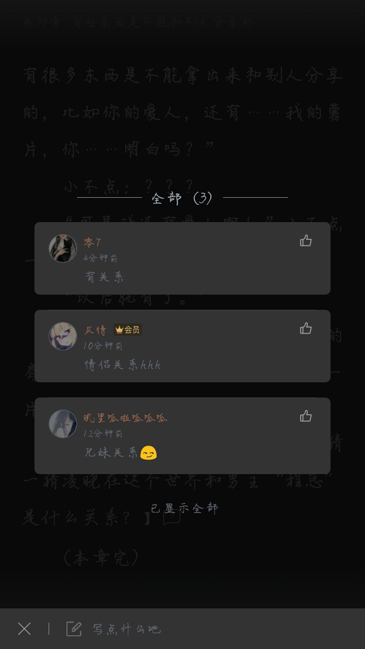 There is currently no male protagonist, and there is currently no Cp. Will there be a male protagonist in the future? Will there be any emotional scenes? I want to ask the female protagonist what she thinks (゚o゚; To sum up in one sentence - The author has no outline! All plots are made up on the fly! I don't even know what I'm going to write tomorrow, but you actually ask me such a profound question as to whether I will have a male protagonist in the future. I really don't know how to answer. Everything is based on the plot, with the heroine's growth and life as the main line. I hope that the plot can go with the flow, without forcing a CP, and I will not deliberately fall in love. Everything can be done as it happens. Although the protagonist of the novel is just a plot character, I treat her as a real person and want to give them a real soul of flesh and blood. If you meet the most suitable person, you can let nature take its course and fall in love vigorously. If you don't meet the most suitable person, life without the other half may not be unexciting-- No matter how many winds and frosts we go through no matter how many years pass Still the original girl The above is my answer. Ask about suicide again. [Emot=default,10/] This is the voice of an author who has no outline and is physically and mentally exhausted...