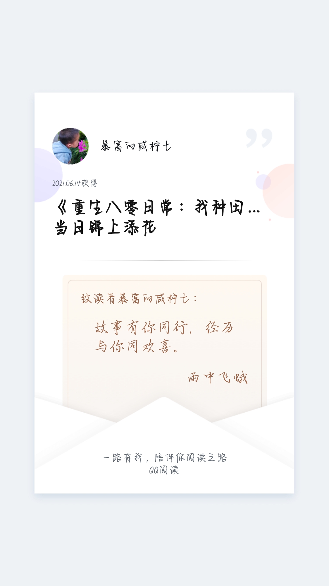 Hello fellow readers, "Rebirth of 80" is not a slap-in-the-face text, but an inspirational text for daily growth, so please be patient and don't rush and expect to be slapped in the face in all kinds of ways. In addition, the characters in it also have shortcomings. The most serious one is the daughter of the eldest son of the Zhao family. Because she has gone through some bad experiences and has no one to guide her since she was a child, she has the most serious psychological problems. However, children need to be patiently cultivated and they will grow up slowly in the future. Therefore, if you like it or have any opinions, please rate it rationally. Don't give bad reviews because of the character. The author of Power Generation for Love, Baobao, expressed that he was very hurt.