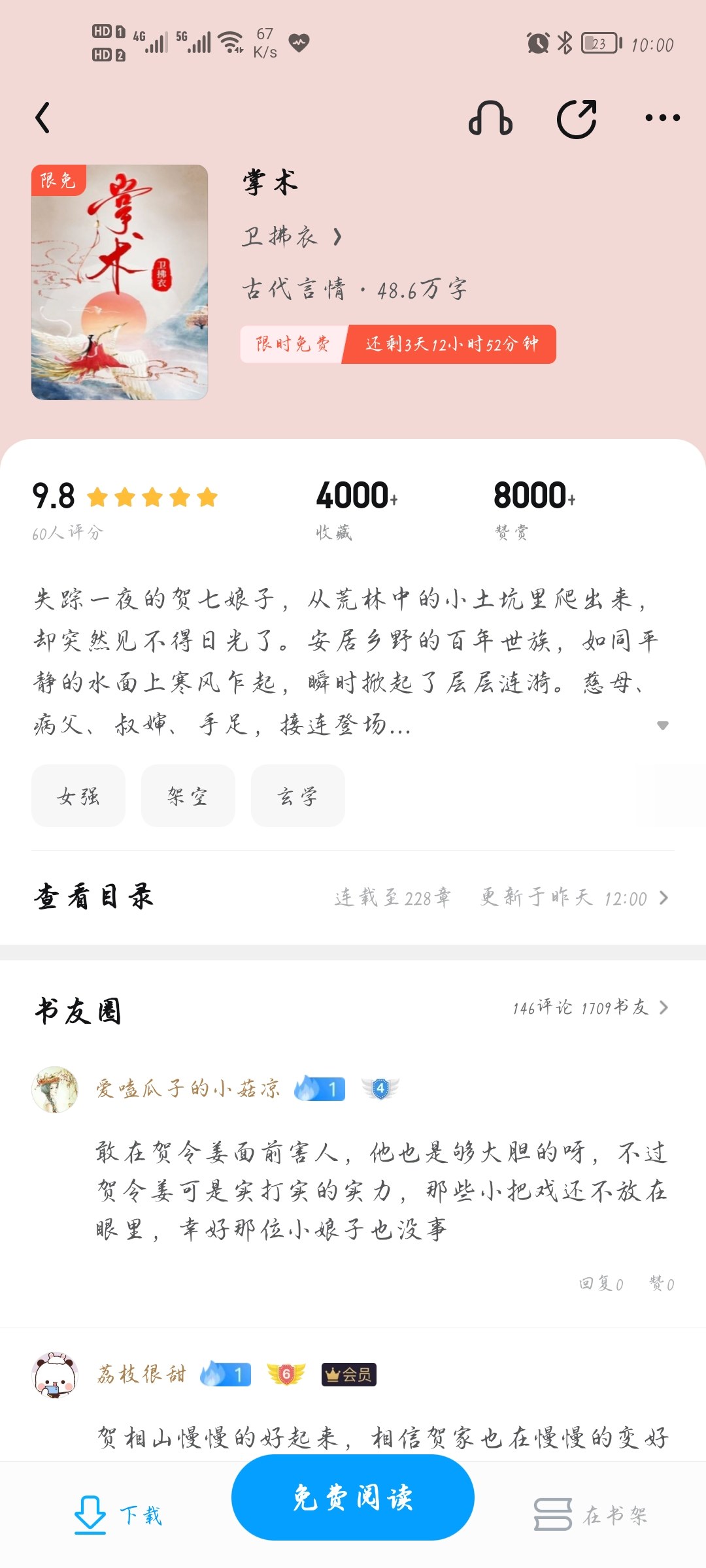 I have read sixty chapters. The language is good, the plot is reasonable, the setting is attractive, the soul comes back, the pattern is not small, peaceful and bright, different from the sharp and gloomy writing style of a certain Hou seeking his own destiny. But I couldn't catch up behind me. It seemed that I suddenly jumped out and started mixing things, and I lost my sight.