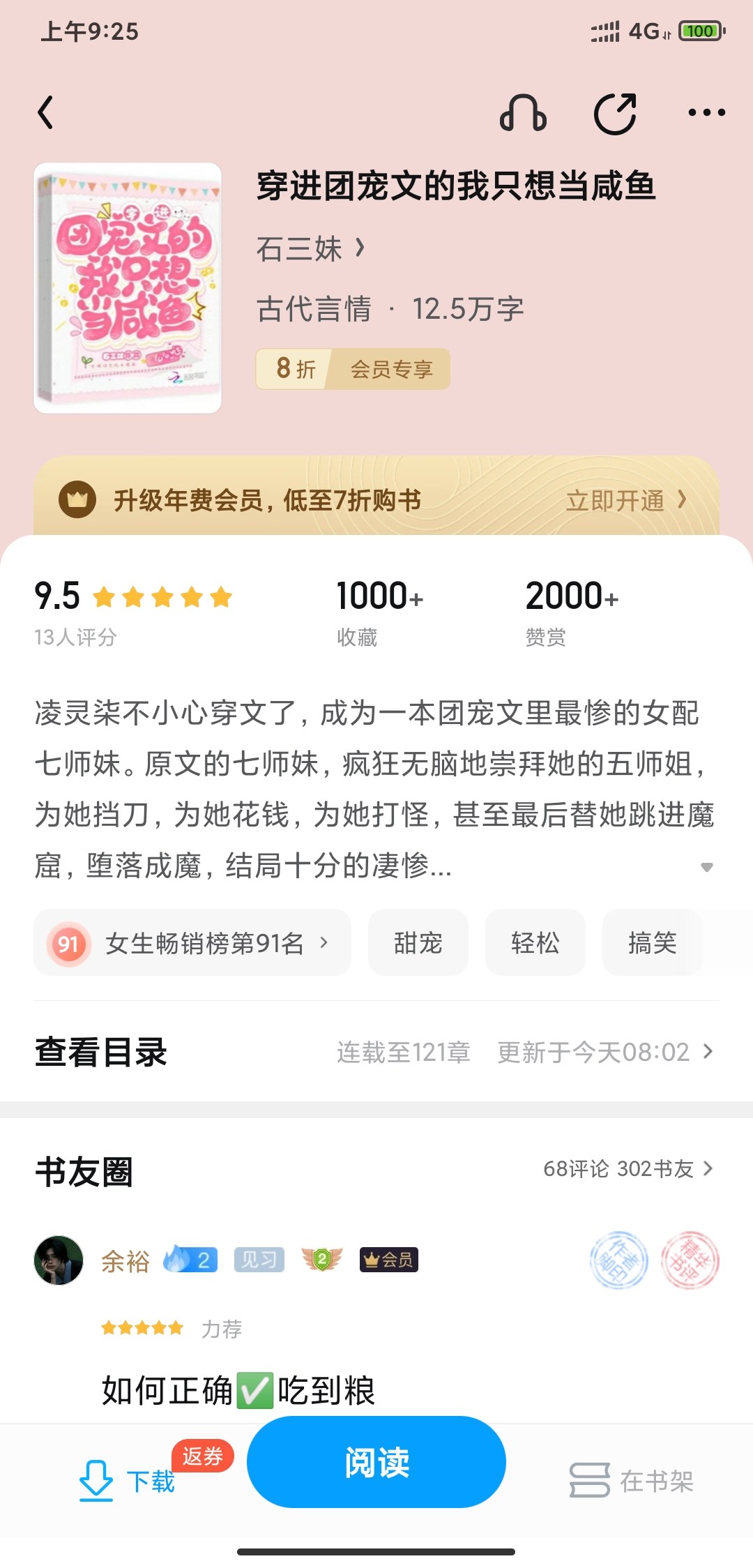 Ling Lingqi accidentally broke the story and became the most miserable female support girl, the seventh junior sister, in a group favorite novel. The seventh junior sister in the original text, the fifth senior sister who crazily and mindlessly worshiped her, blocked knives for her, spent money for her, fought monsters for her, and even finally jumped into the devil's cave for her and degenerated into a demon. The ending was very miserable. So Ling Lingqi decided that from now on she would just be a little salted fish waiting to die, and she would not be a poor knife-blocker even if she was killed. I just didn't expect that the plot would change drastically. The outstanding men who were originally devoted to pursuing the heroine suddenly changed their direction and pursued her, a little salty fish. Help! She really doesn't want to be a heroine, she just wants to be a carefree little salted fish. Please let me go! However, this is what the boss replied to her. Cang Beiqing: "You want to be a salted fish, no problem. I will provide you with food and drink, and I promise to raise you to be fat and healthy." Zhang Yaozu: "Wouldn't it be better to marry me? You don't need to work hard to practice, and you can just lie down and become an immortal." Fang Yuanzhou: "I have emptied the harem a few days ago, you can gently She will be my queen." Quan Luo: "What a coincidence, my clan leader is the shark, and he is a perfect match for you, this little salty fish." At this time, Feng Jiuyue put his arms around Ling Lingqi's waist and said to the bosses, "I'm sorry, she likes me."